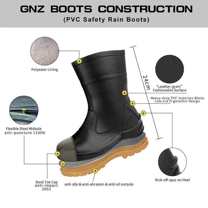 Stivali antipioggia in acciaio con lacci da 24cm e scarpe antipioggia in metallo con taglio basso industriale e Sole in metallo in PVC scarpe antipioggia