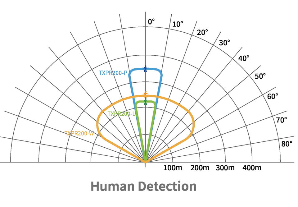 Fino a 250m (820ft)Campo di rilevamento (umano)