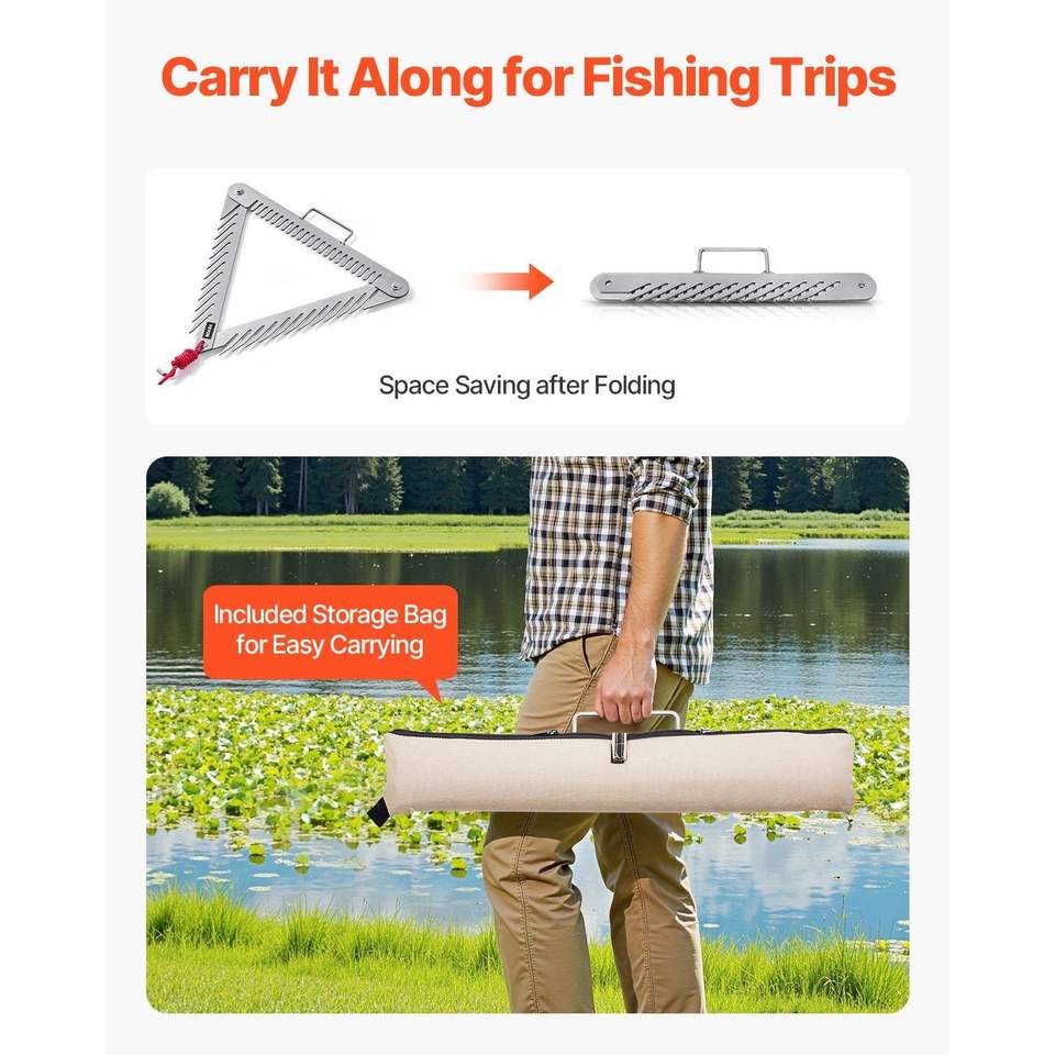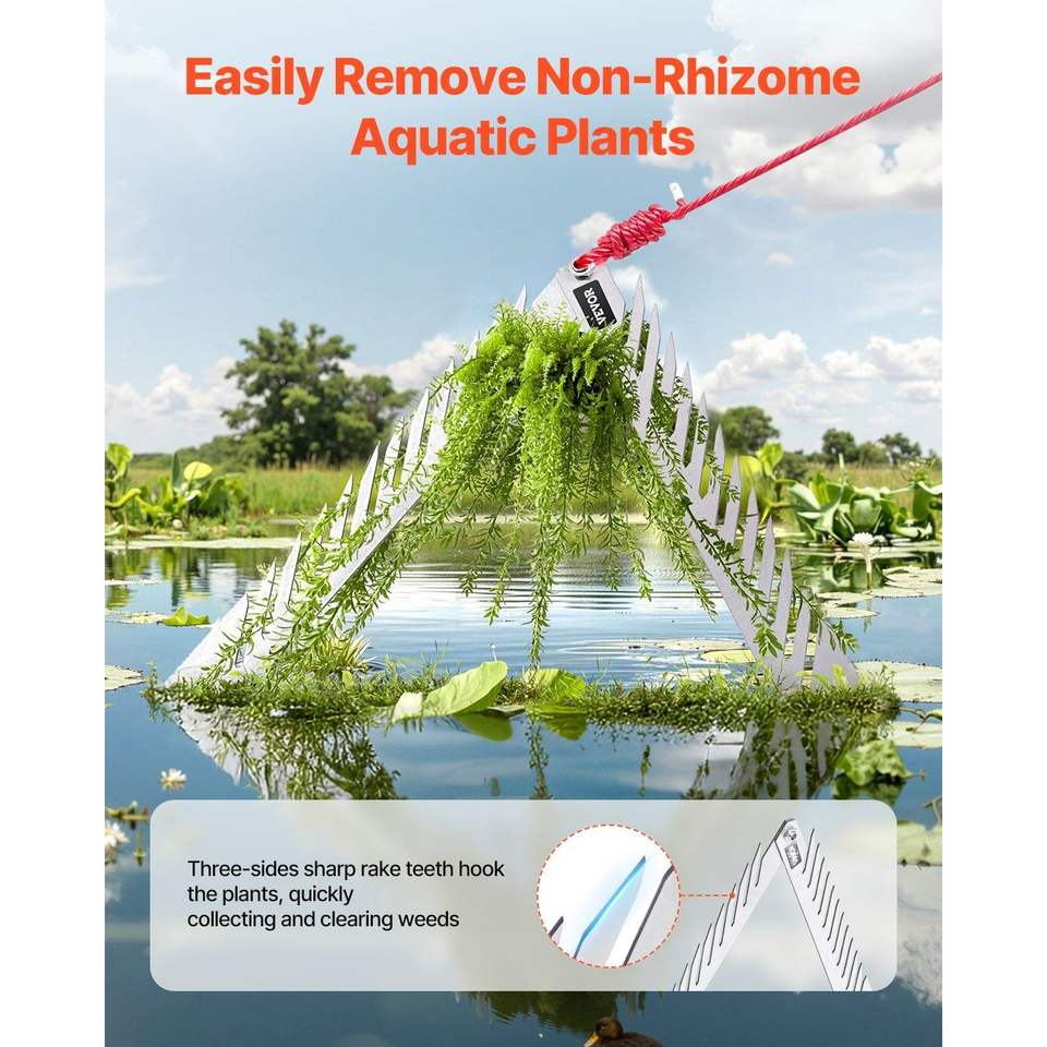 Rastrello per Erbacce da Laghetto Portatile e Pieghevole da 24 Pollici, a 3 Lati, con Manico in Acciaio Inossidabile, Strumenti e Accessori per la Pulizia di Piscine