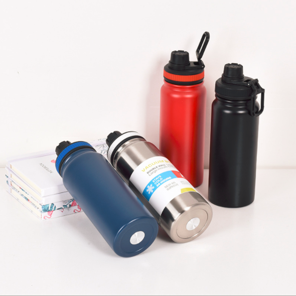 24oz Wide Mouth Double Wall Vacuum Flask Insulated Stainless Hydration Flask Tumbler Cup With Spout Lid