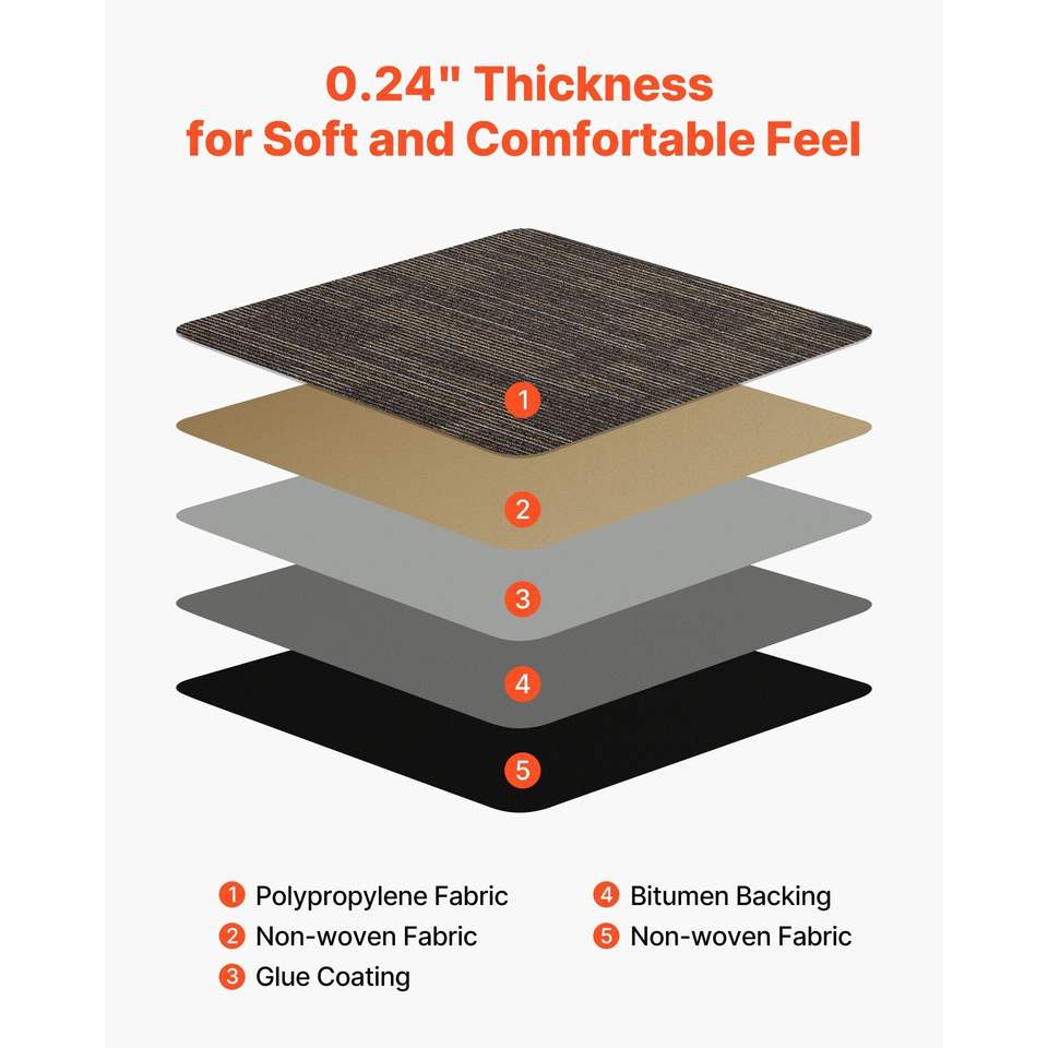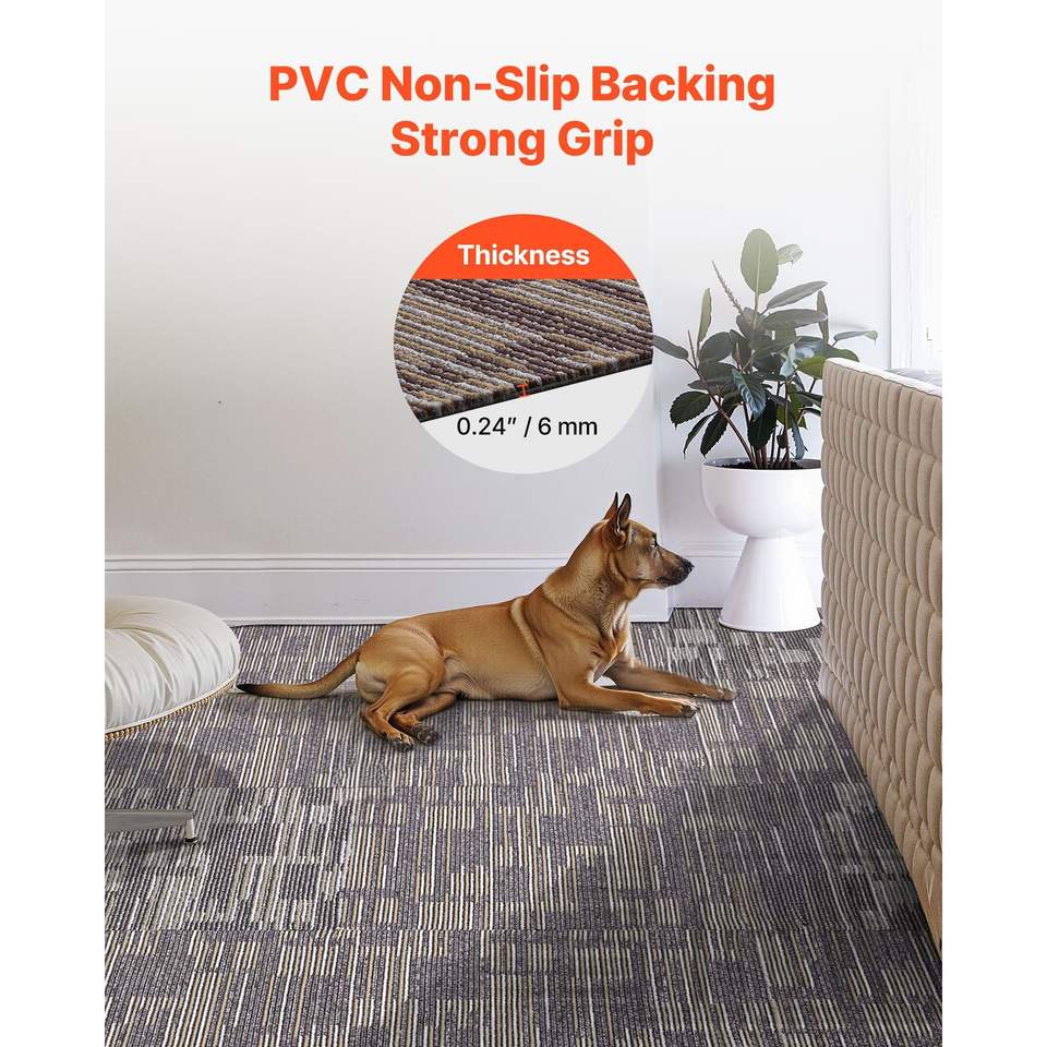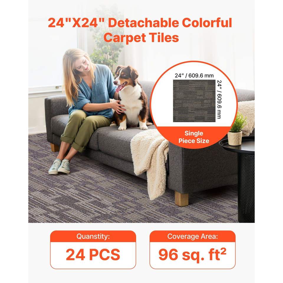 24 Pezzi Piastrelle Modulari per Moquette 24x24 Pollici, Tappeto Commerciale Morbido Imbottito Senza Cuciture, 96 Piedi Quadrati