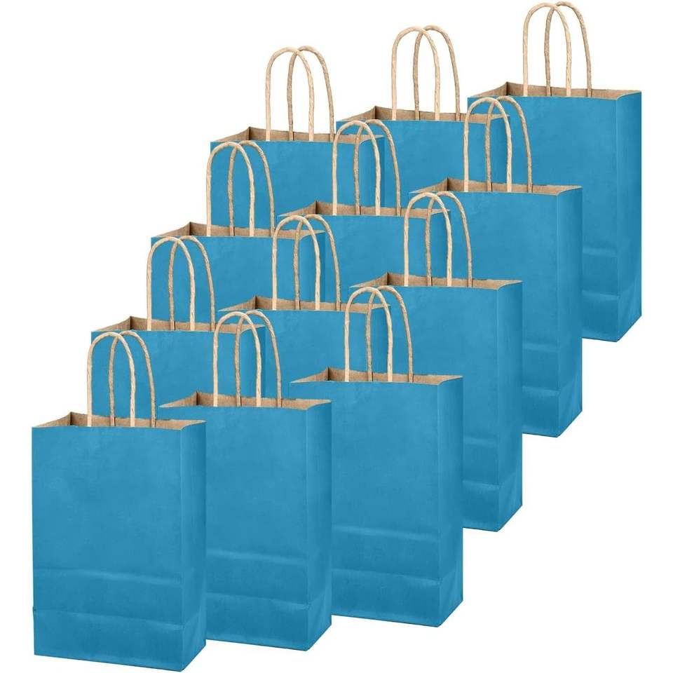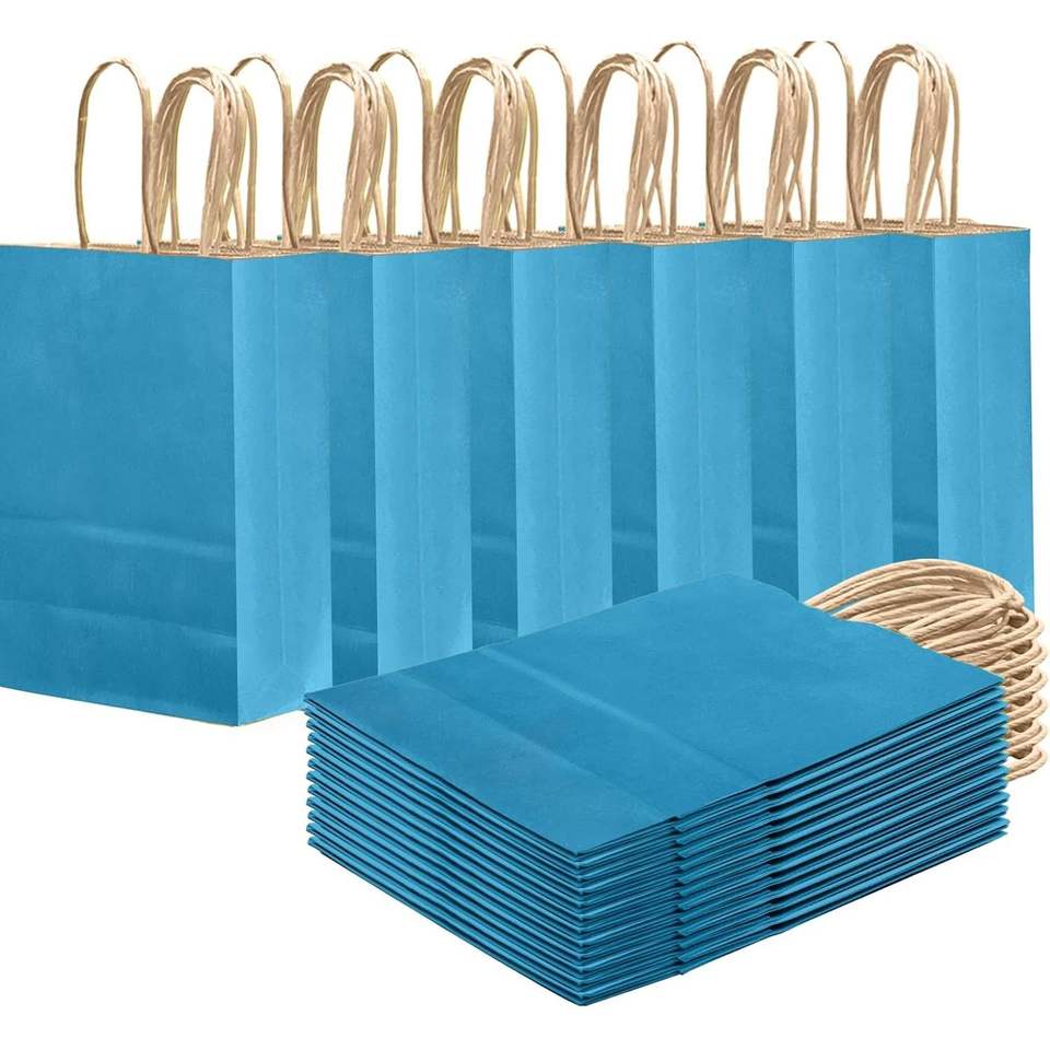 24pcs Bulk Ice Blue Gift Bags with Handles 8.3"x6"x3.15" Solid Party Favor Paper Bags 2022 New Year's Gift Idea