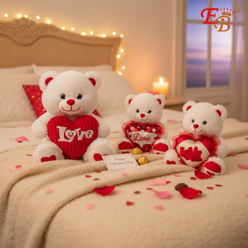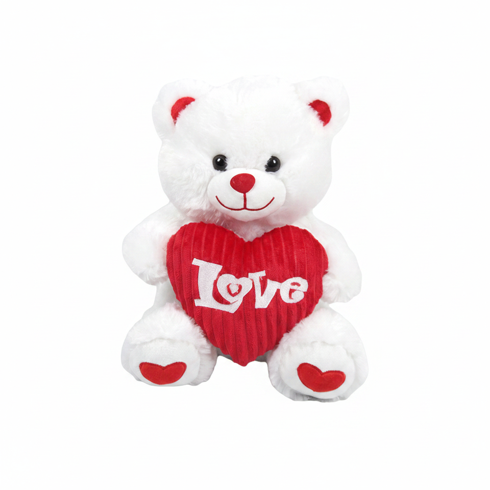 24pcs/CS 12" White Teddy Bear with Heart Valentine's Day Supplies Model 376602