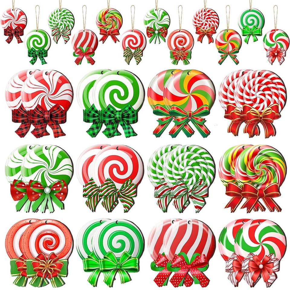 24 Pezzi Ciondoli in Legno a Forma di Lecca-lecca Colorati, Decorazioni Natalizie da Appendere con Corde, Palline e Ornamenti per Albero di Natale