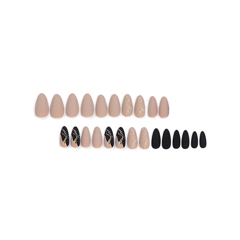 24 Pezzi Unghie Finte Nude Stile Francese, Vendita all'Ingrosso, Semplici Unghie a Mandorla Media, Colore Nero con Linea Dorata, Unghie Preincollate