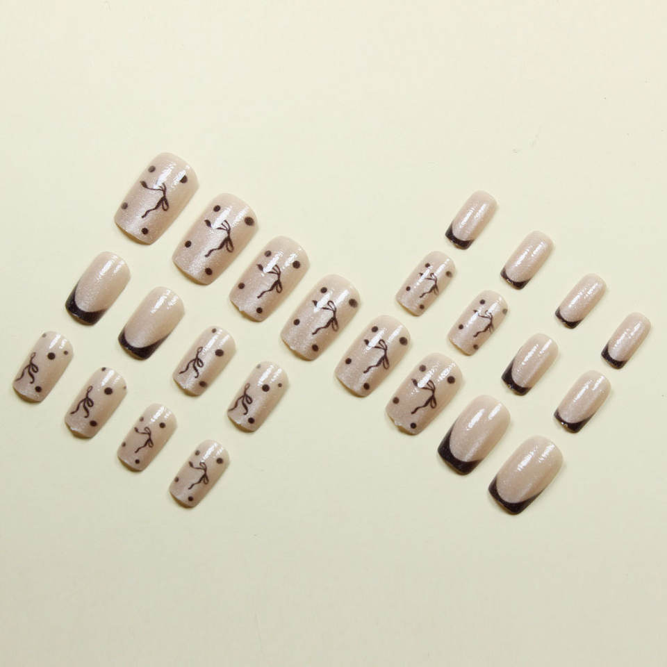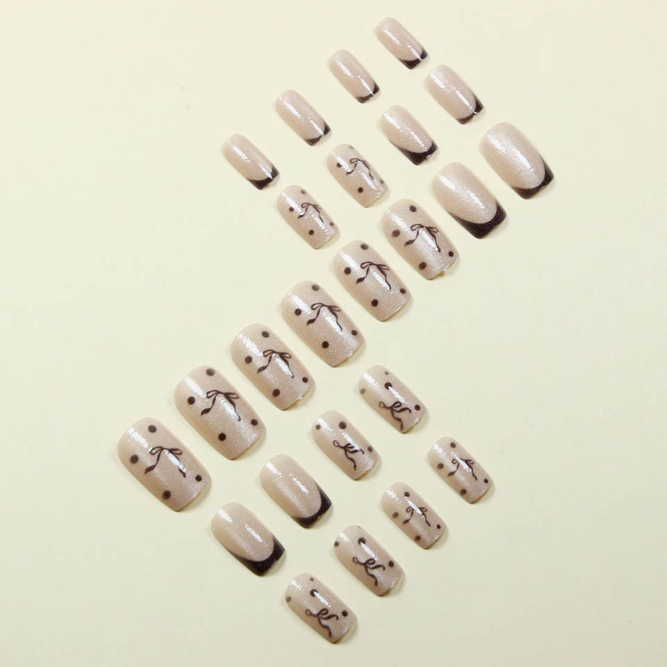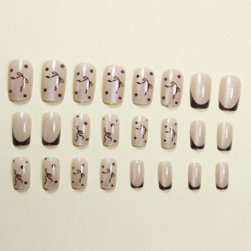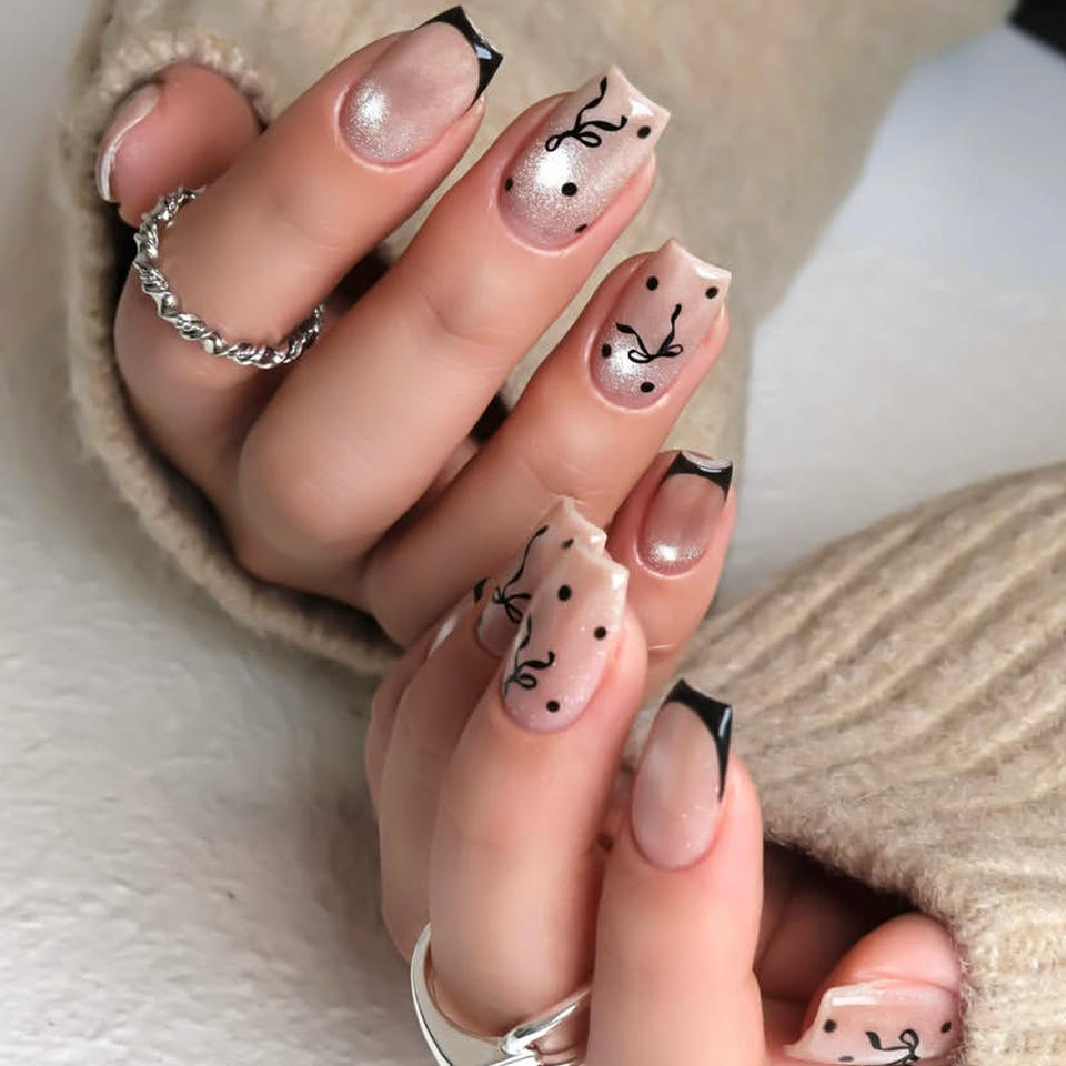 24 Pezzi Unghie Finte Quadrate con Design Occhio di Gatto Argento Glitterato, Stile Francese Nero con Fiocco, Nail Art Dolce e Cool per Ragazze Alla Moda
