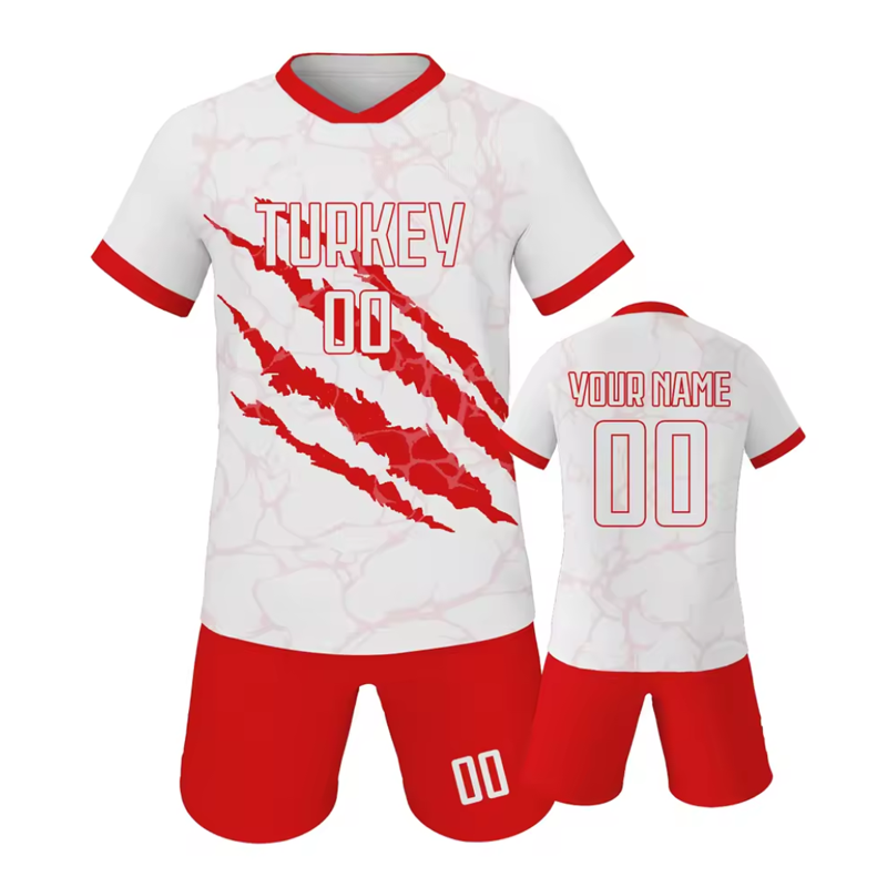 Set Sportivo Personalizzato 25/26 per Uomo Adulto, Maglia da Calcio Retrò Traspirante 100% Poliestere con Stampa a Pigmenti, Maglietta da Calcio Turca