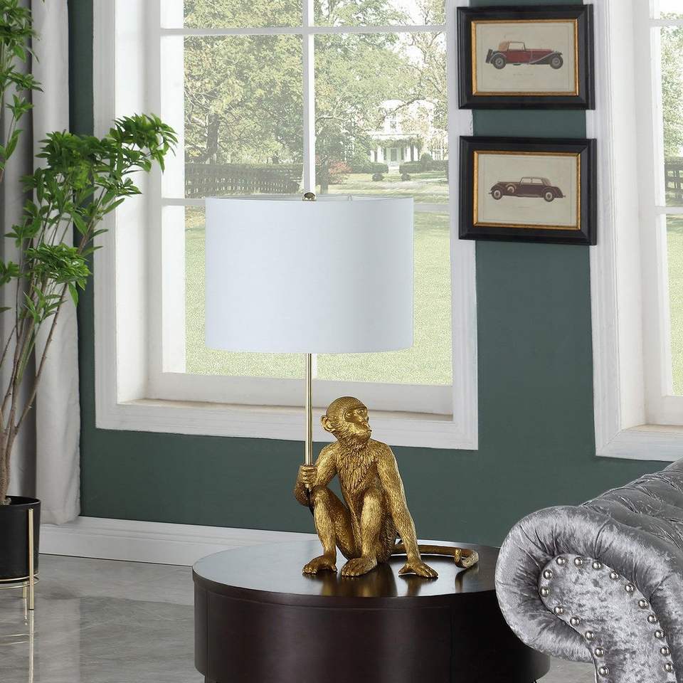 Lampada da Tavolo in Poliresina con Scimmia Dorata da 25,50 Pollici, Elegante Pezzo Decorativo per Casa o Ufficio