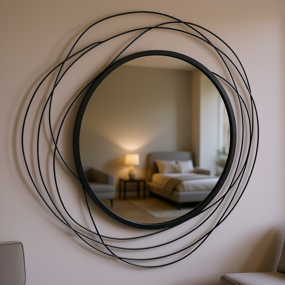 Modern Metal Circle Wall Mirror Black 25.6 In For Living Room Bedroom Decor