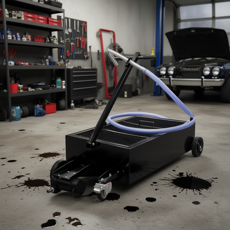 Drain Tank 25 Gallon Electric Pump Foldable With Swivel Casters Low Profile Oil Change Pan Device
