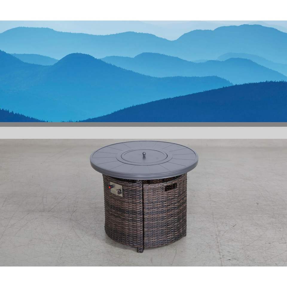 Tavolo da Esterno con Braciere in Alluminio Color Espresso, 63,5 cm (H) x 81,3 cm (L), con Coperchio