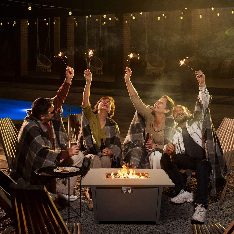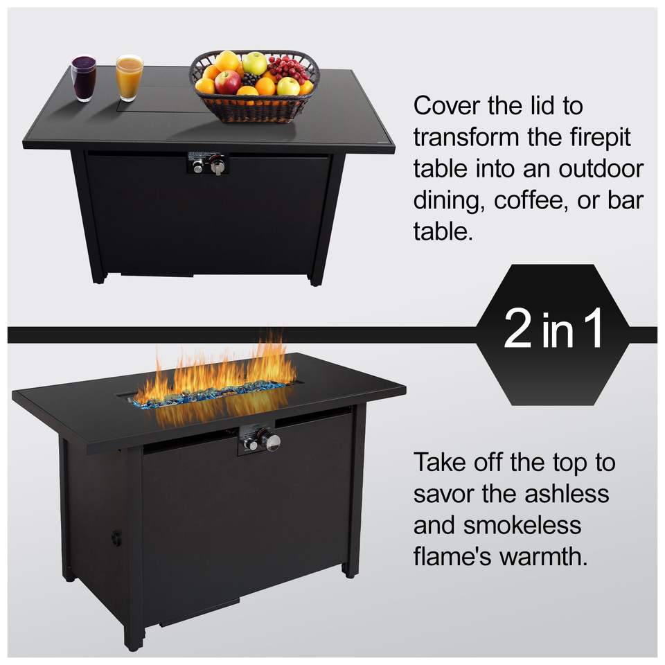 Tavolo con Braciere da Esterno in Acciaio, 63,5 cm (H) x 106,7 cm (L), con Coperchio, Braciere Resistente per Uso Esterno
