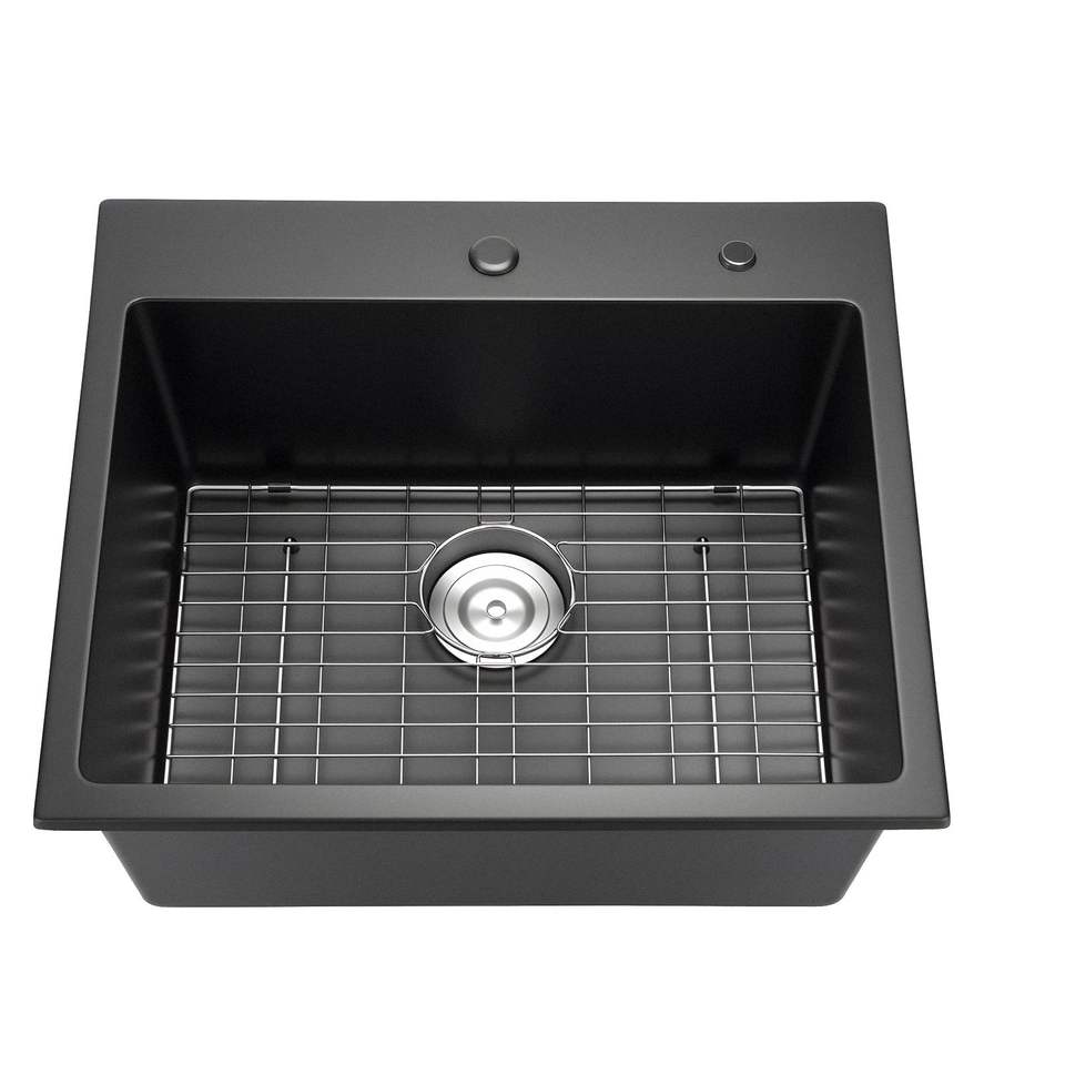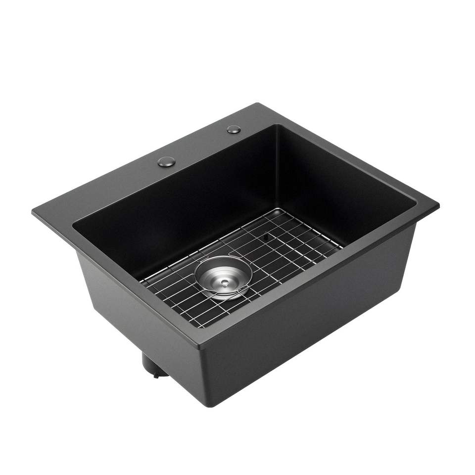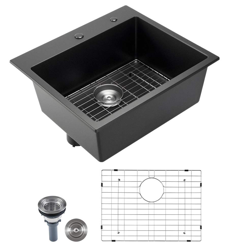 Lavello da cucina a vasca singola da 25 pollici, stile rustico, da incasso, in granito, con accessori multipli per la casa
