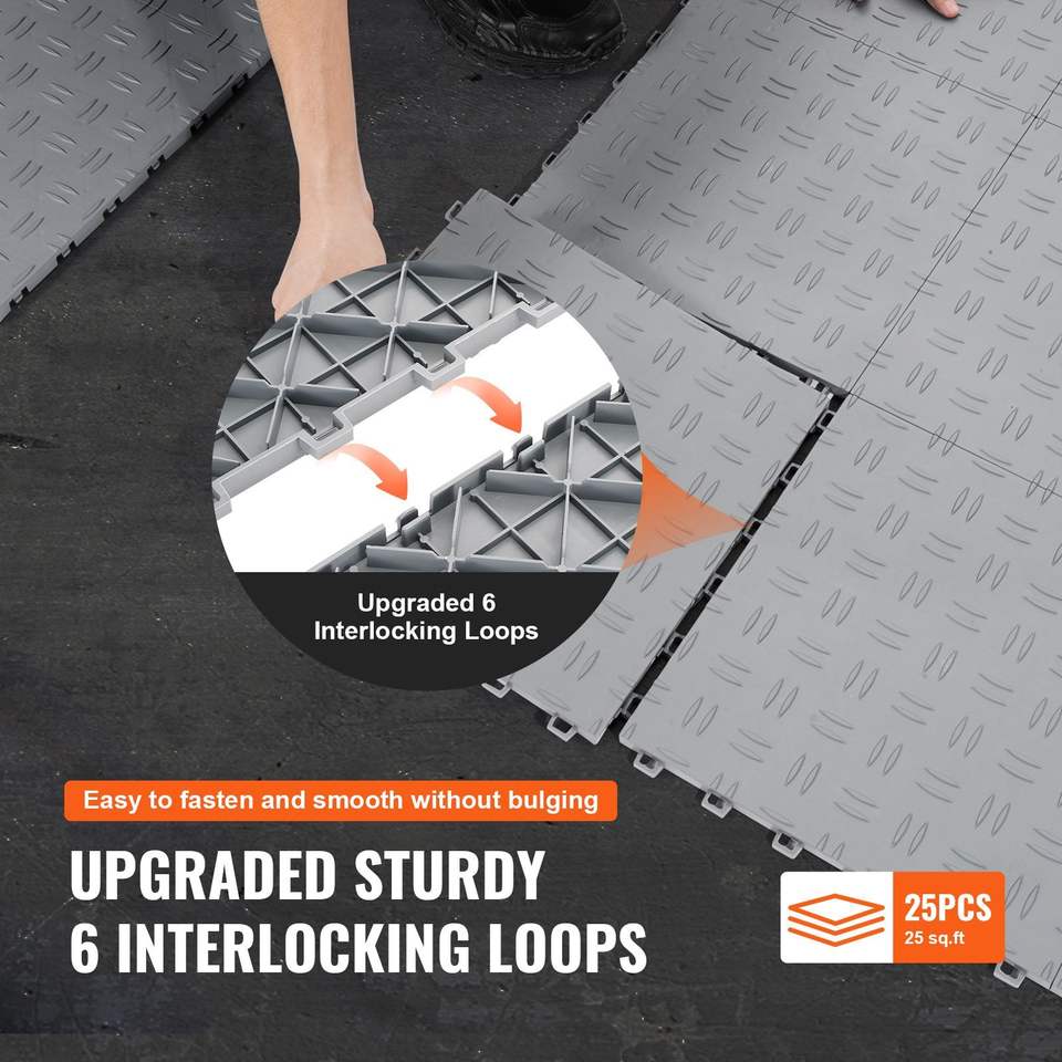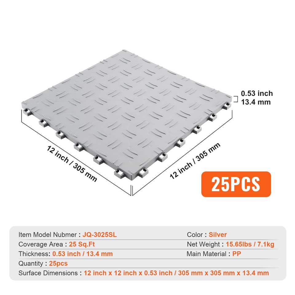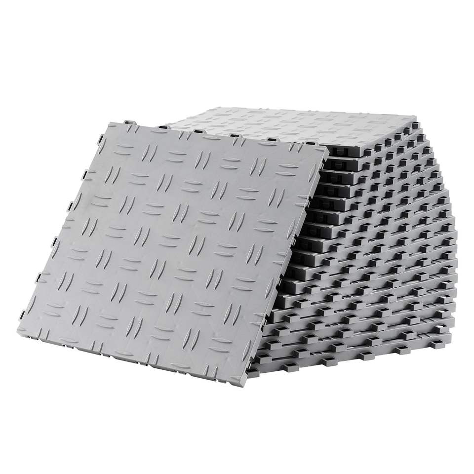 Set di 25 Piastrelle Incastrabili 12 X 12 X 0,53 Pollici per Pavimenti di Garage, Antiscivolo con Texture Bifacciale in Plastica
