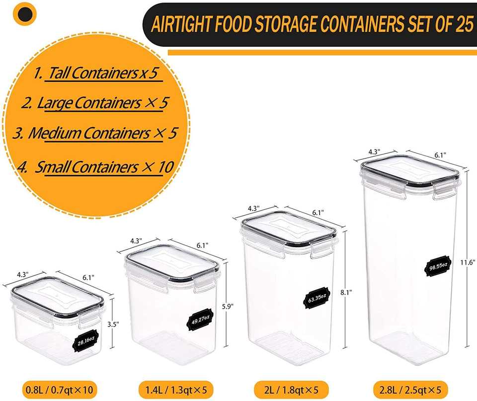 Set di 25 Contenitori per Alimenti Classici Rettangolari in Plastica PP Ermetici Ecologici Senza BPA Multifunzione per Cucina