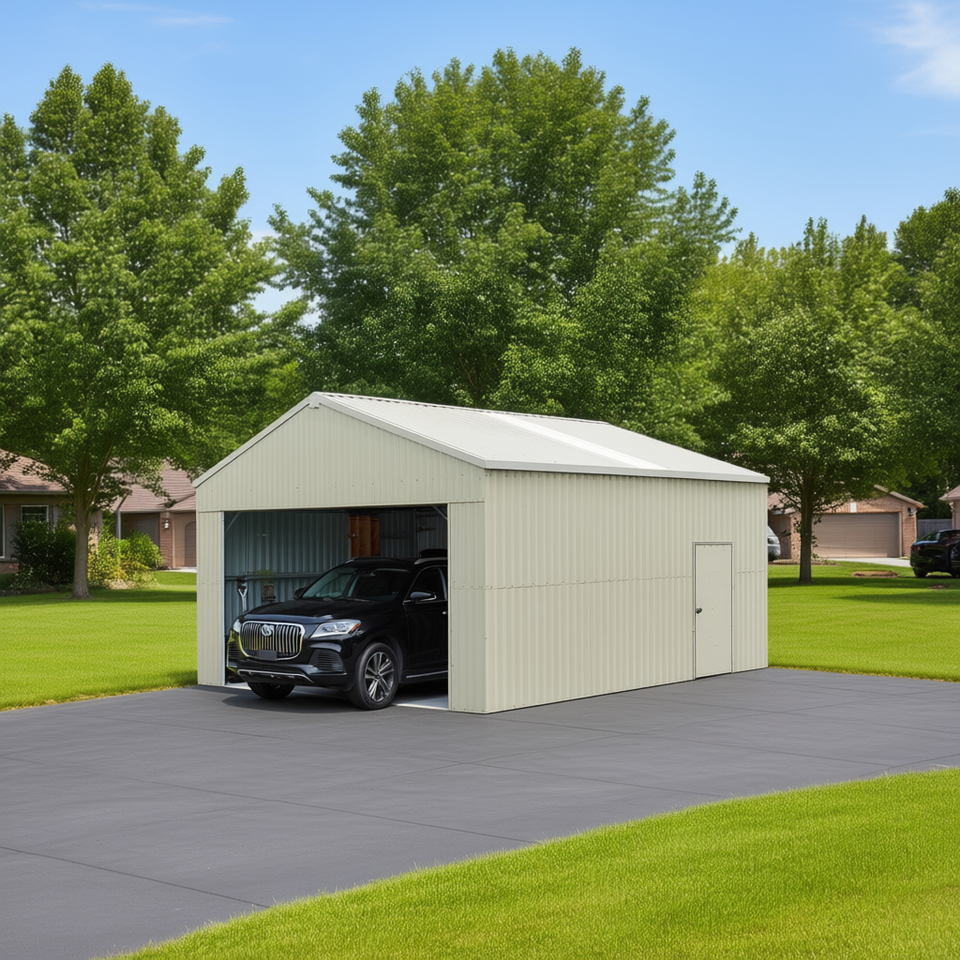 Garage in Metallo 25 X 25 per Due Auto, Struttura in Acciaio con Porta Laterale, Unità di Stoccaggio Prefabbricata per Uso Garage