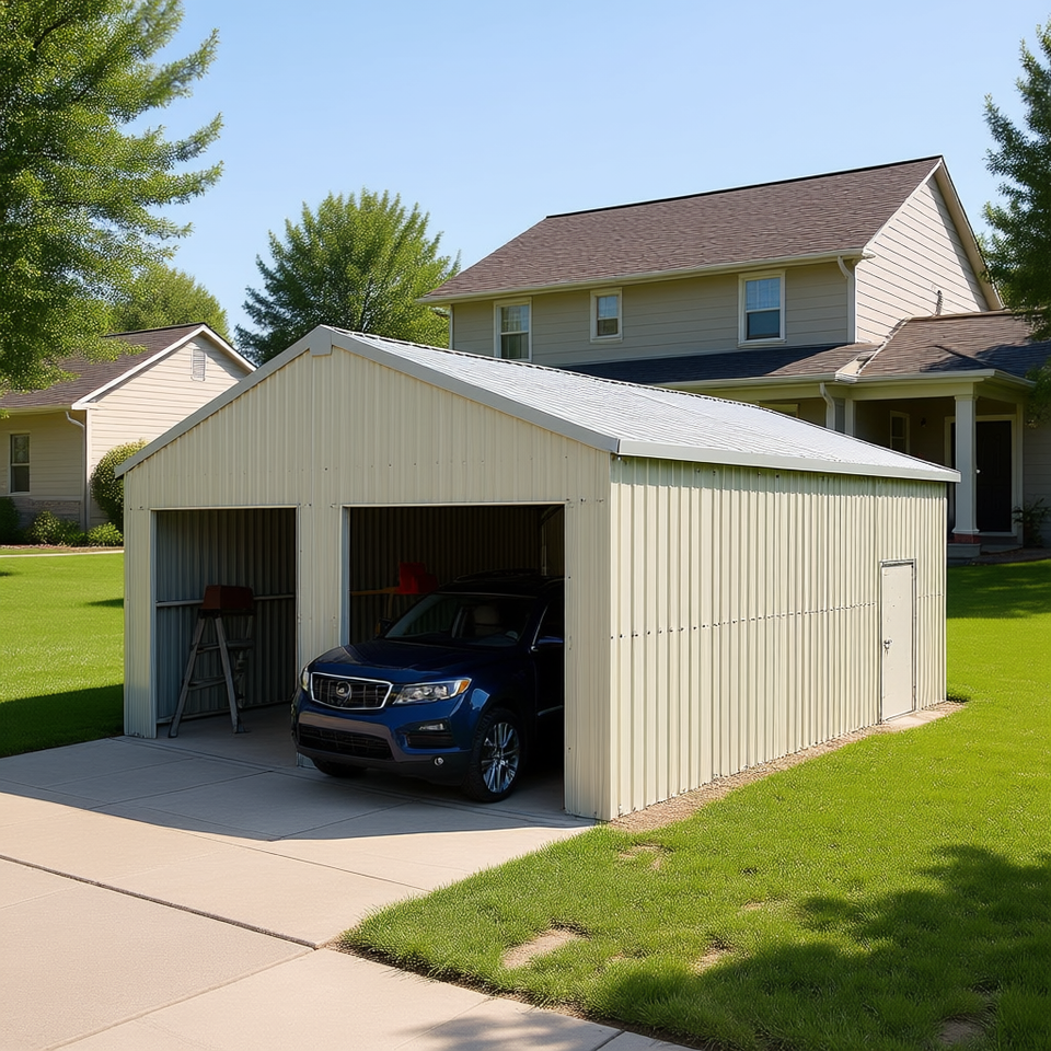 Double Garage Metal Barn Shed 25 X 33 With Side Entry Door Prefab Storage For Garage Use Industrial Design Style