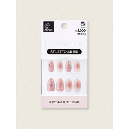 25-Year-Old Too Cool for School Real Wear Nail Tips Korean Cosmetics [Ribboncore] 24-Pack Artificial Fingernails
