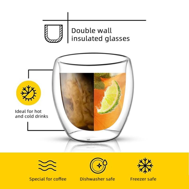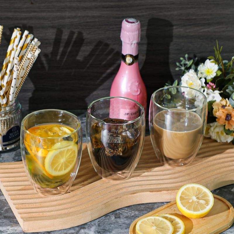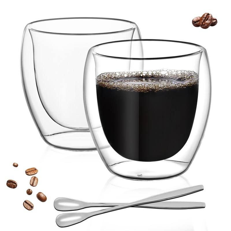250/350/450ml fornitura di fabbrica doppia parete di vetro tazza di caffè resistente al calore vetro borosilicato doppio vetro tazza di caffè