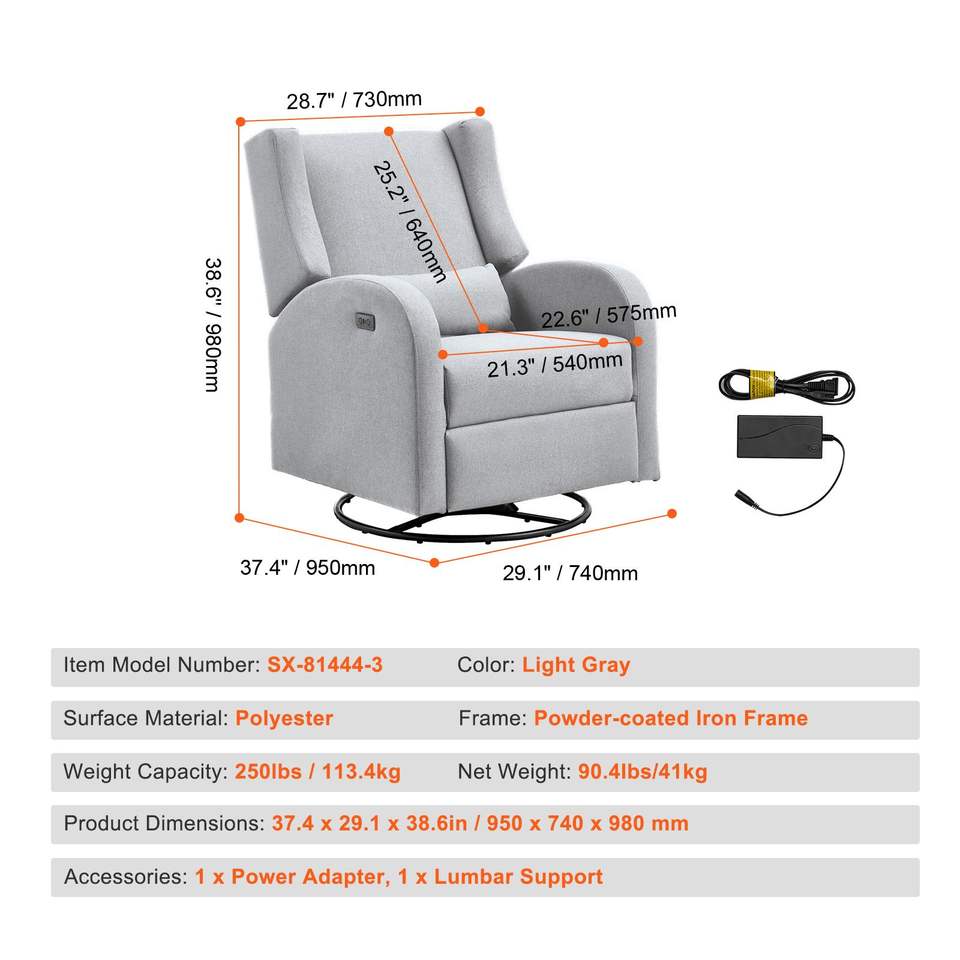 Poltrona Reclinabile Girevole Elettrica con Capacità di 250 Libbre, Porta USB, in Poliestere, Comoda Poltrona Girevole Reclinabile