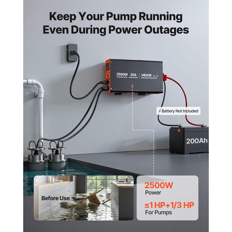 Inverter per Pompa Solare a Onda Pura da 2500W con Display LCD, Sistema di Backup a Batteria e Commutazione Automatica