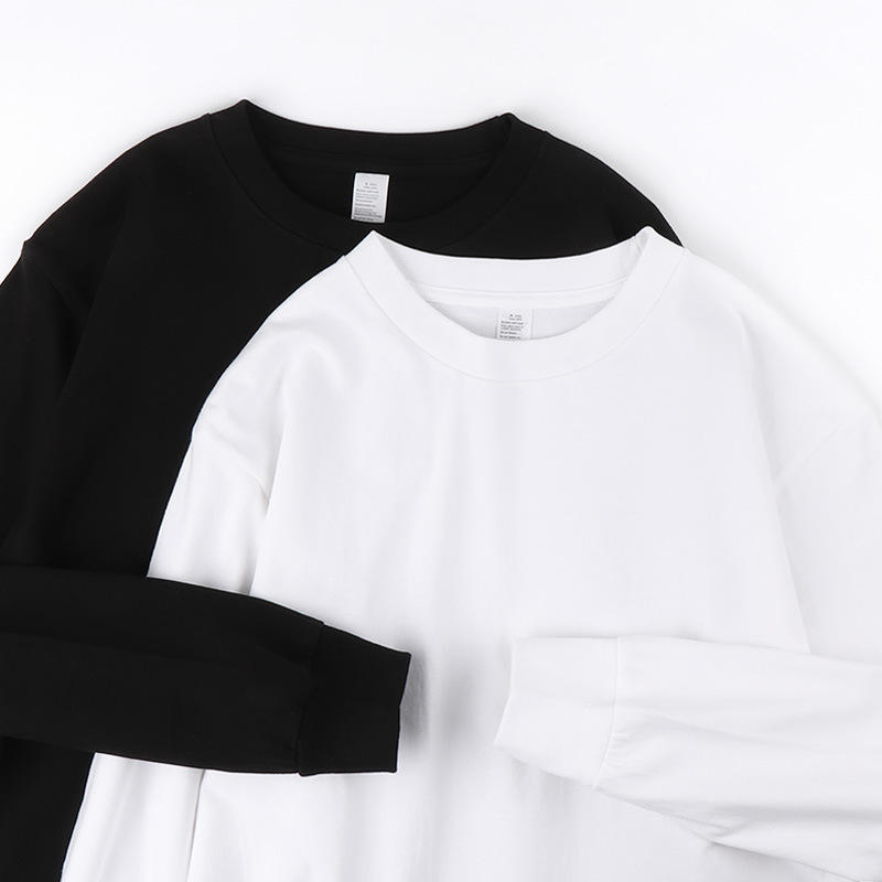 Magliette a maniche lunghe da uomo e da donna, pesanti giapponesi, 250G, maglietta larga in cotone bianco a due aghi
