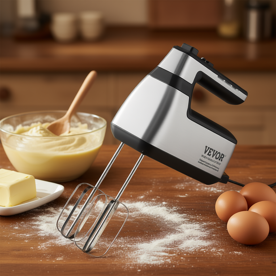 Electric Handheld Mixer 250W Stainless Steel Variable Speed Beaters Dough Hooks for Baking