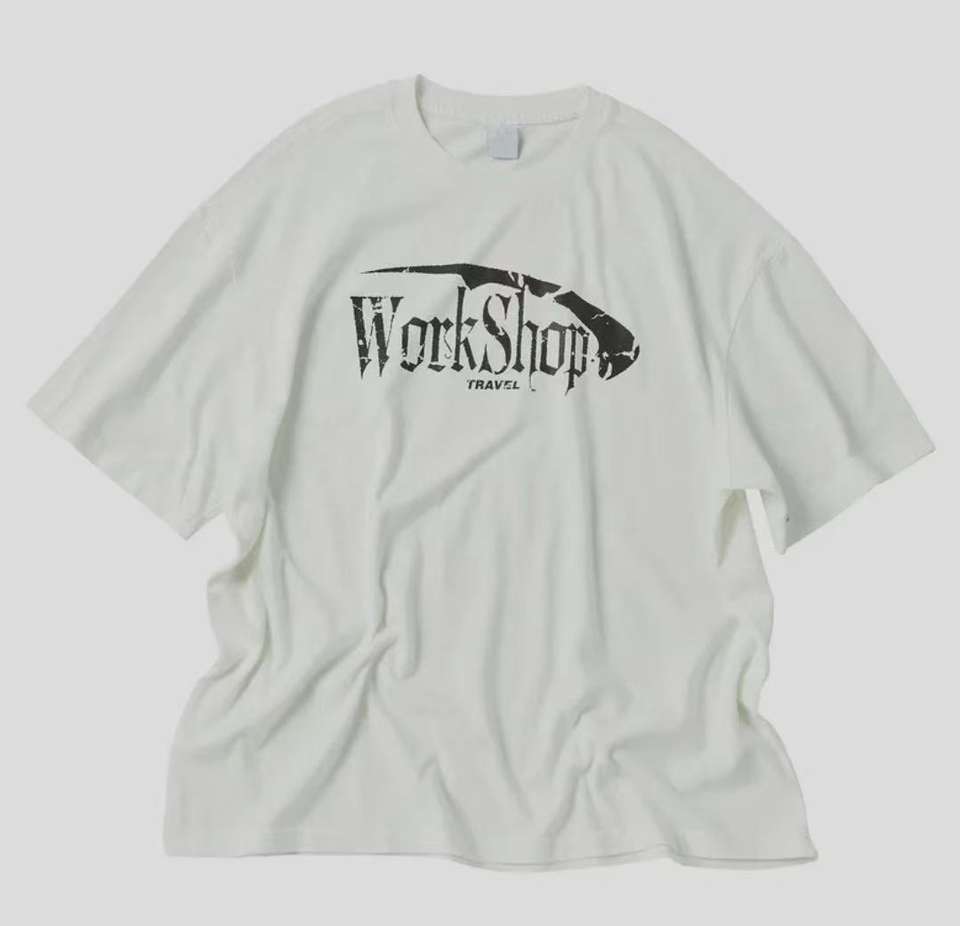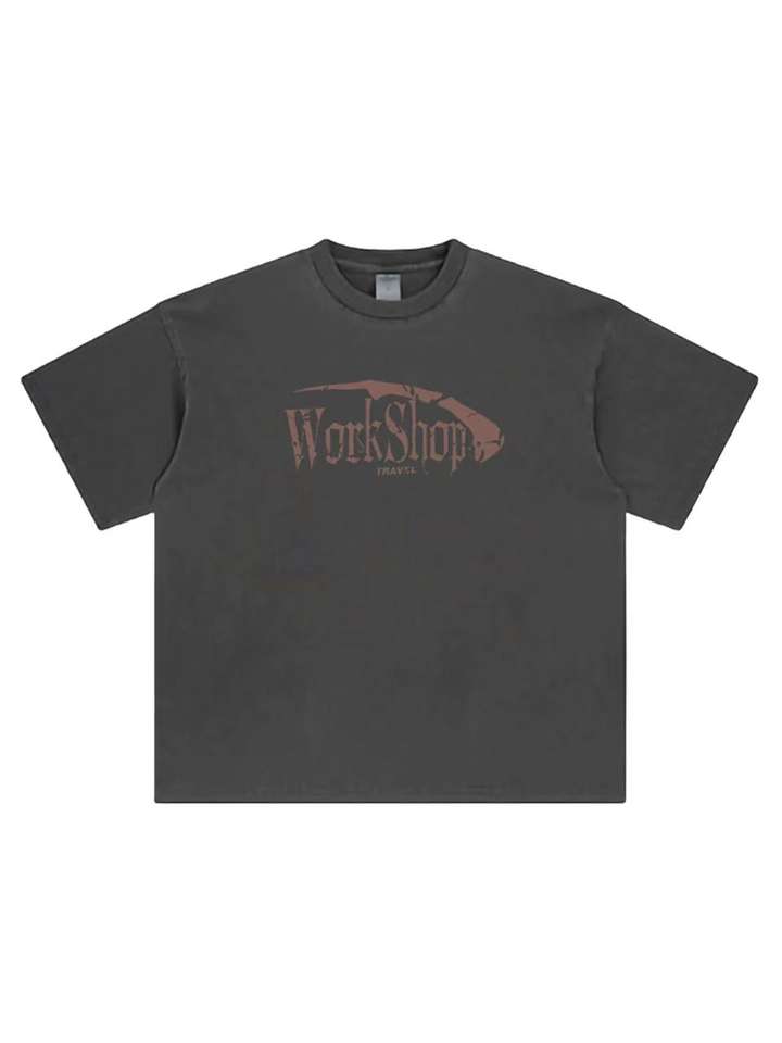250g Weight, 100% Cotton Round-neck Washed Vintage T-shirt with Graphic Typography, Oversized Loose Fit Top for Street Style