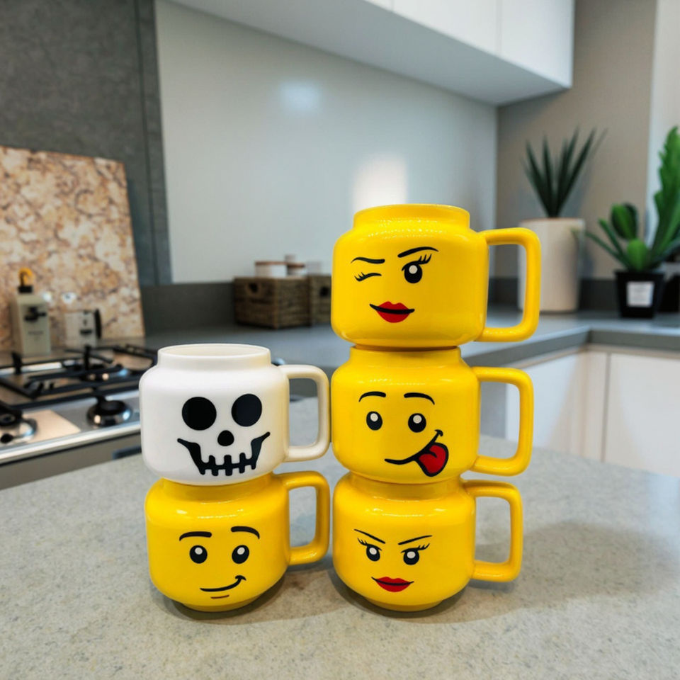Tazza in ceramica da 250ml sorriso viso giallo divertente cartone animato caffè latte tè acqua tazza di espressione carina per bambini che bevono tazze da caffè