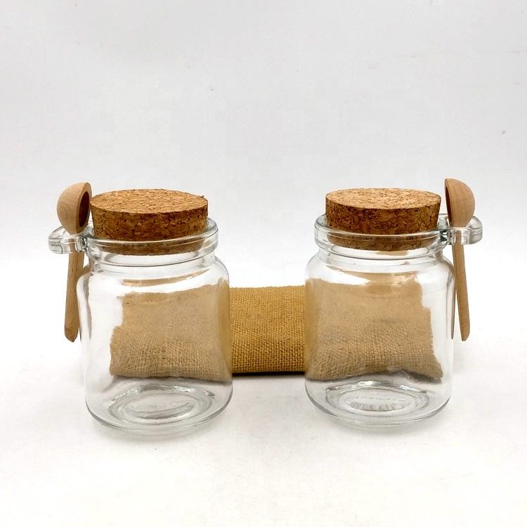 250ml clear Foods Glass Bottles 200ml 8oz Cork Top Storage Jars with Spoon for Spice Nuts Dried Fruits Honey Jam Body Butter