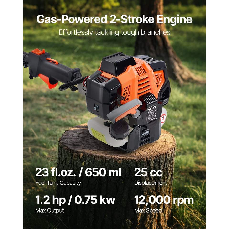 Motosega a Gas 2 Tempi 25CC con Barra di Taglio da 12 Pollici, Potatore Senza Fili 7 in 1 con Serbatoio Carburante da 23 Fl.oz
