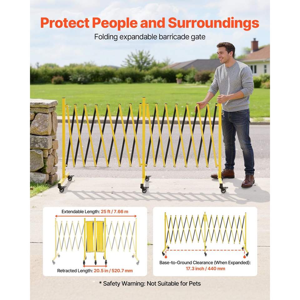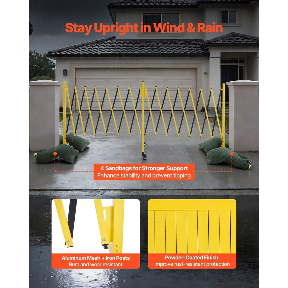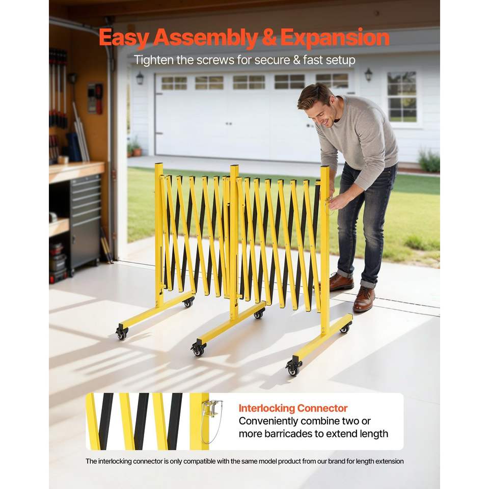 Barriere di Sicurezza Industriali Pieghevoli Portatili da 25FT, Espandibili, Flessibili, con Ruote Bloccabili per il Controllo del Traffico