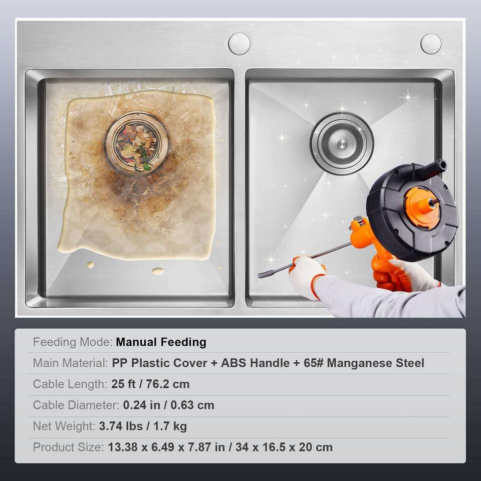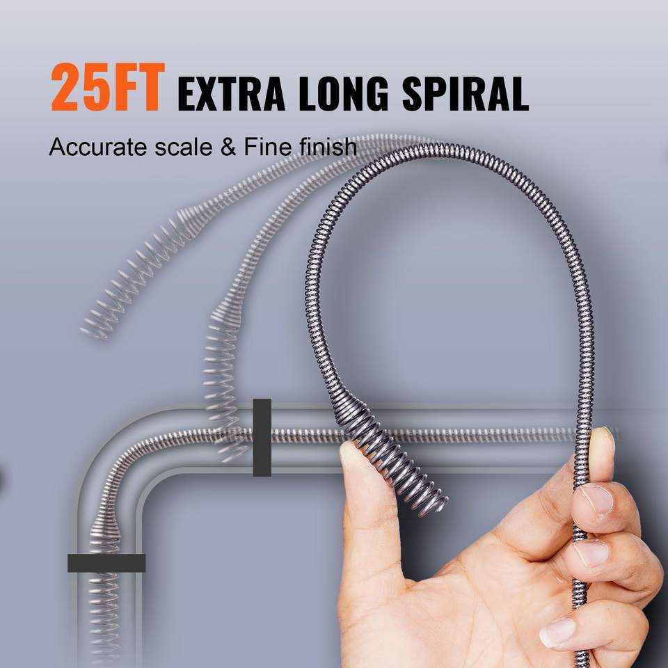 Sonda per la pulizia di scarichi da 25 piedi con alimentazione automatica e attacco per trapano, per la rimozione di intasamenti in cucina e bagno, detergente per scarichi di alta qualità