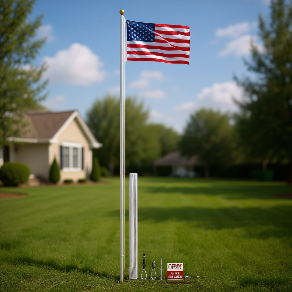 Orion 25ft Outdoor Aluminum Flagpole Kit With Halyard And Sectional Pole For Decorative Display