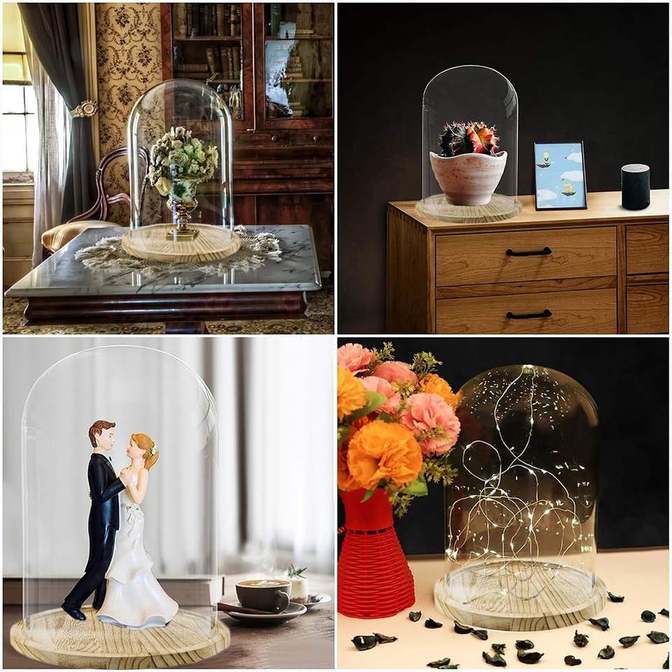 25x36 cm Clear Glass Bell Jar with Wooden Base for Wedding Decorations Objects Flowers Party Favors