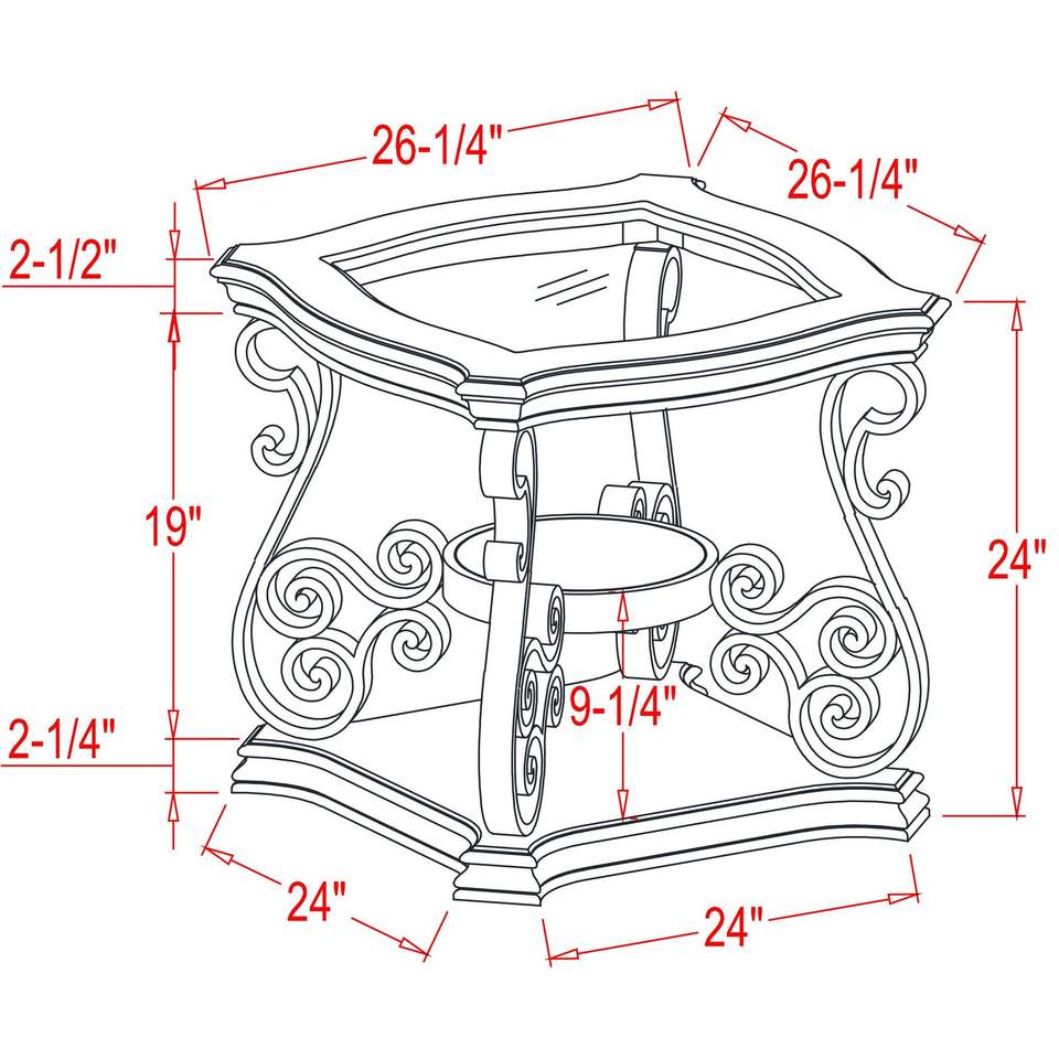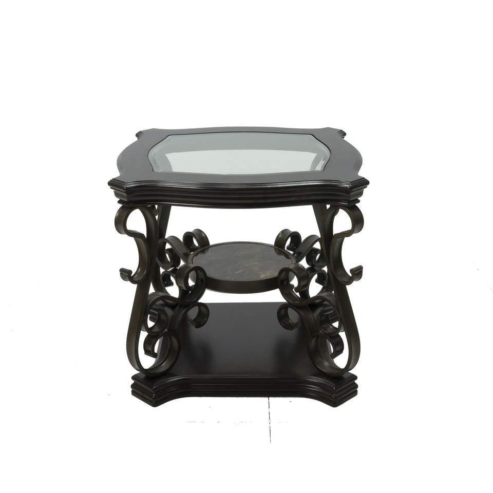 Consolle da 67 cm con piano in vetro e gambe in metallo verniciato a polvere, ripiano centrale in MDF e carta effetto marmo, tavolino da 61 cm di altezza