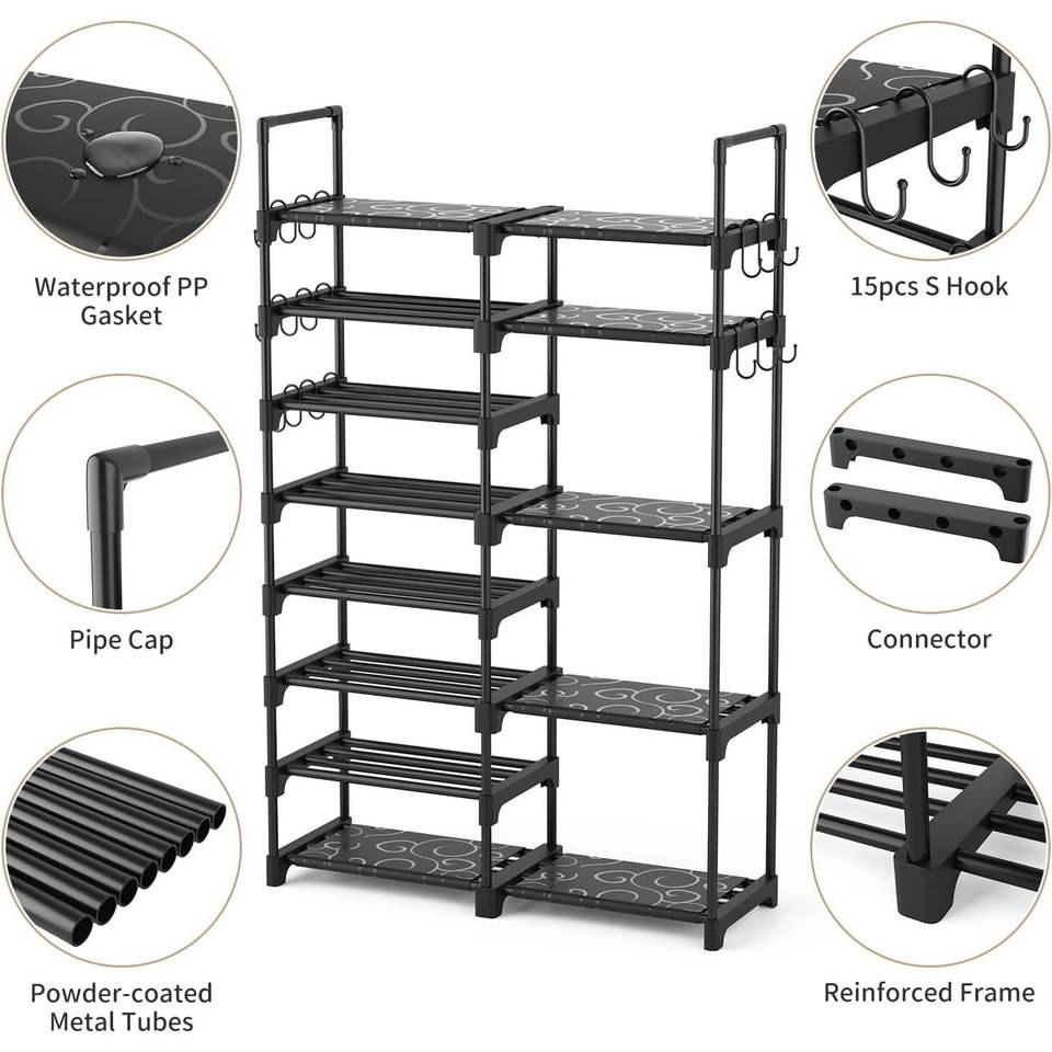 Scarpiera Alta in Metallo da Appendere Sopra la Porta, 8 Livelli con 15 Ganci, per Armadio, Ingresso, Garage, per Stoccaggio Stivali (26-32 Paia)