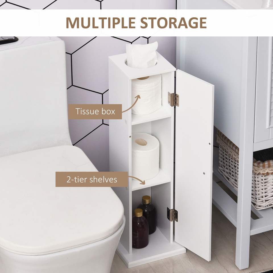 Mobiletto porta carta igienica bianco stretto da 26 pollici, organizer da bagno a pavimento