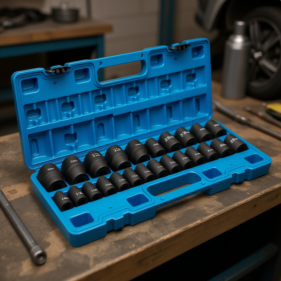 Set di chiavi a bussola a impatto da 26 pezzi, attacco da 1/2 pollice, in acciaio Cr-Mo, metriche da 10 mm a 36 mm, a 6 punte, di grado industriale, con custodia.