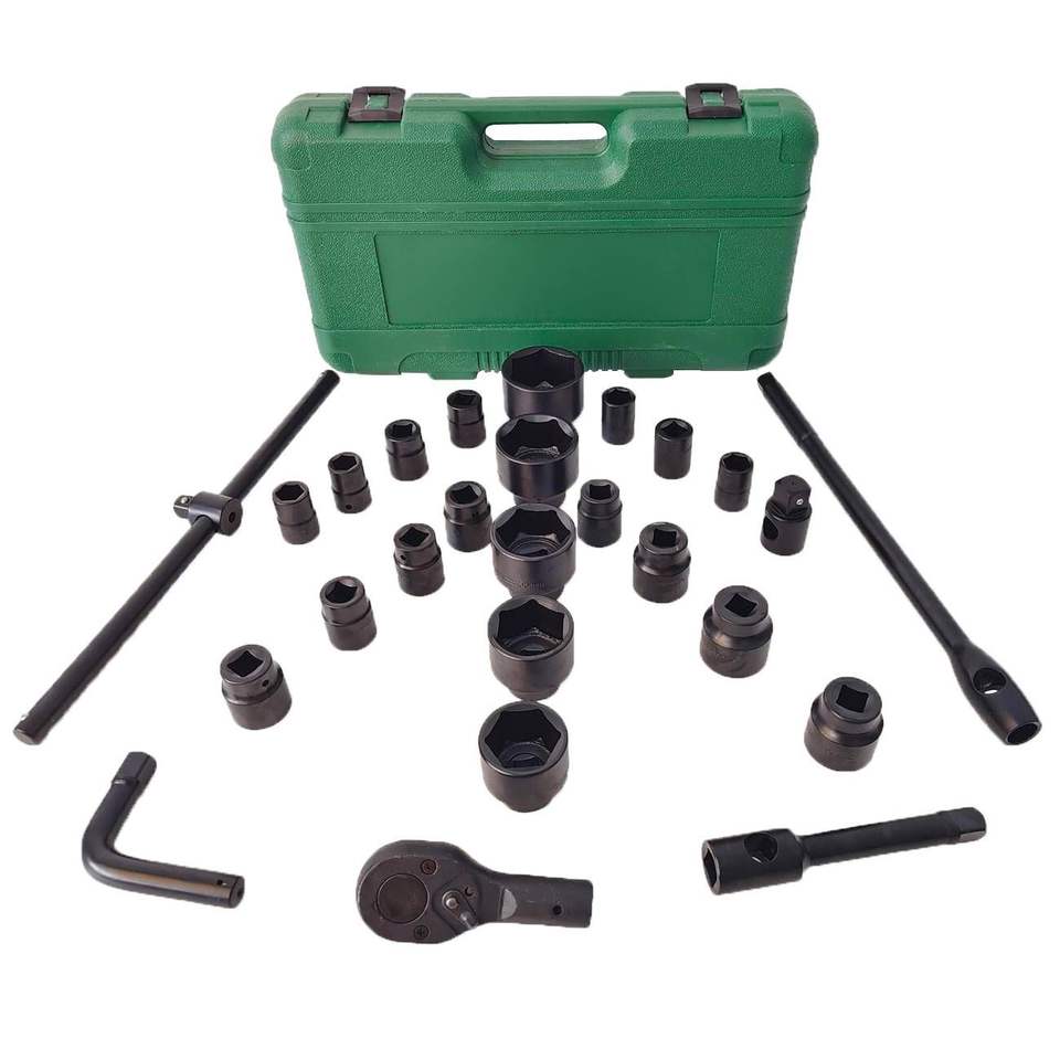 Set di 26 Chiavi a Bussola a Impatto da 3/4 Pollici, Misure Metriche 21-50mm, in Acciaio Cromo Vanadio Cr-V, a 6 Punte, per Stoccaggio Standard