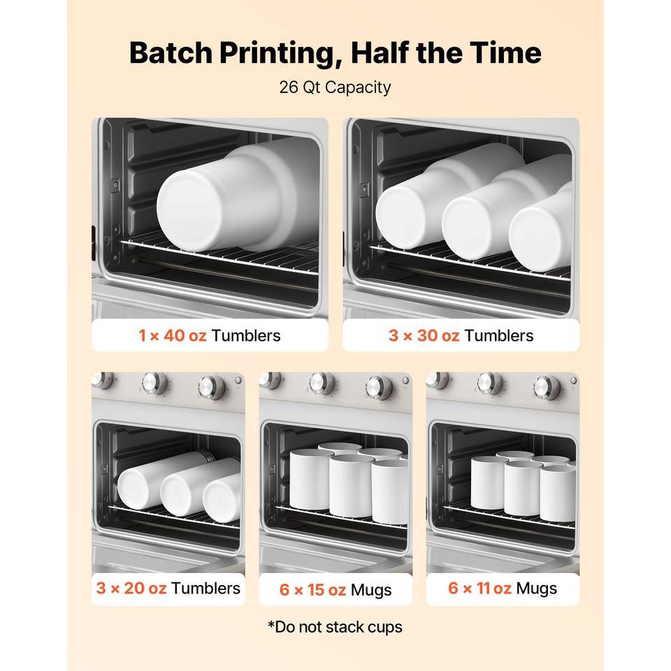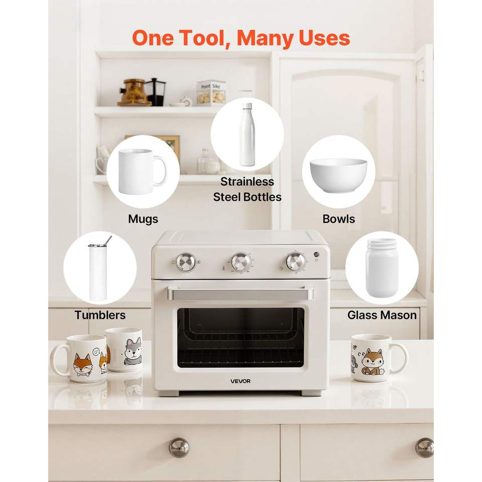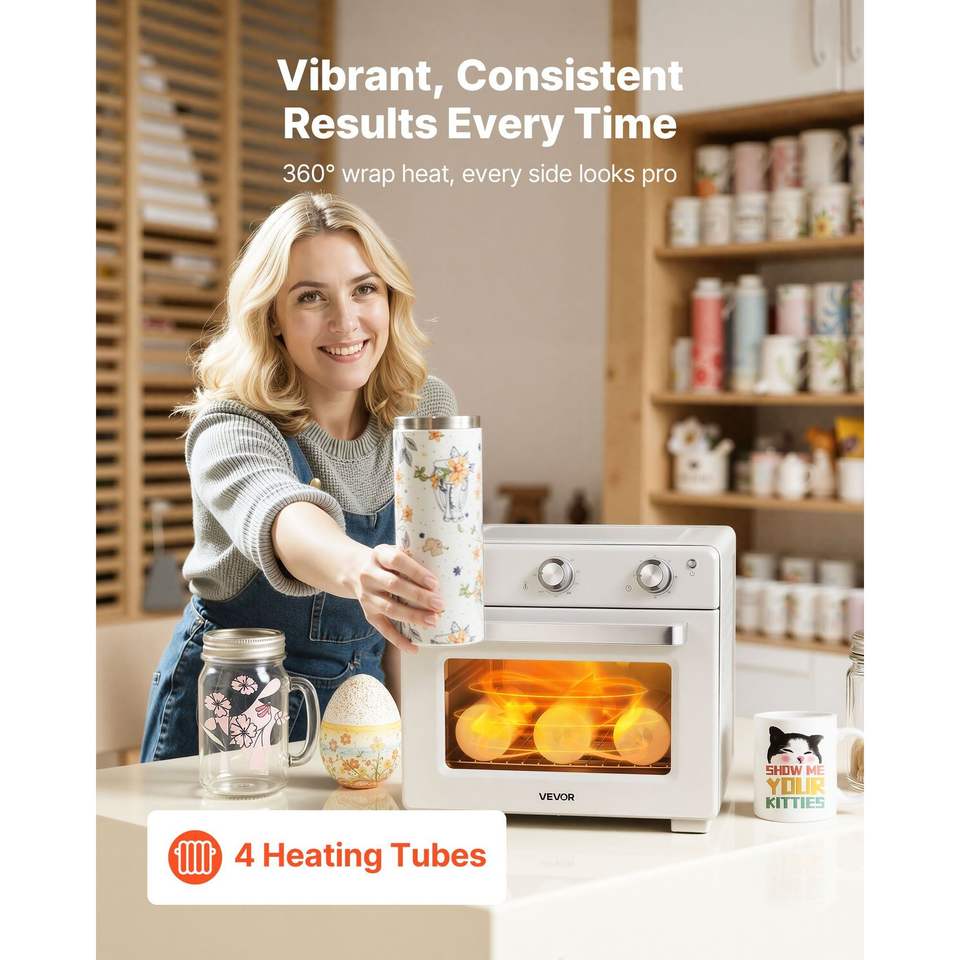 Forno per Sublimazione da 26 Qt per Tumbler da 40oz, 50 Pellicole Termoretraibili, 1 Nastro Adesivo, 2 Guanti Termici, Forno da Banco a Convezione Turbo 360