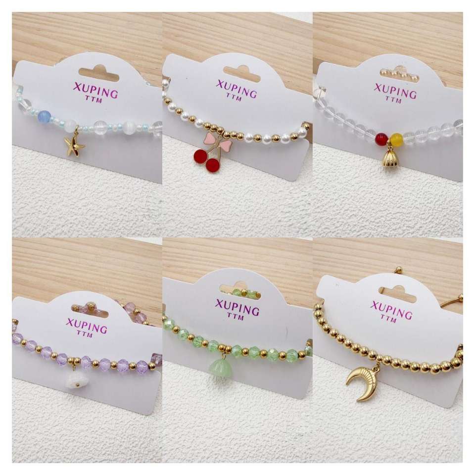 260130 XUPING Bracciale con Perle di Cristallo Artificiale Placcato Oro 14K, Gioiello Regolabile in Acciaio Inossidabile per Donne e Ragazze, Idea Regalo