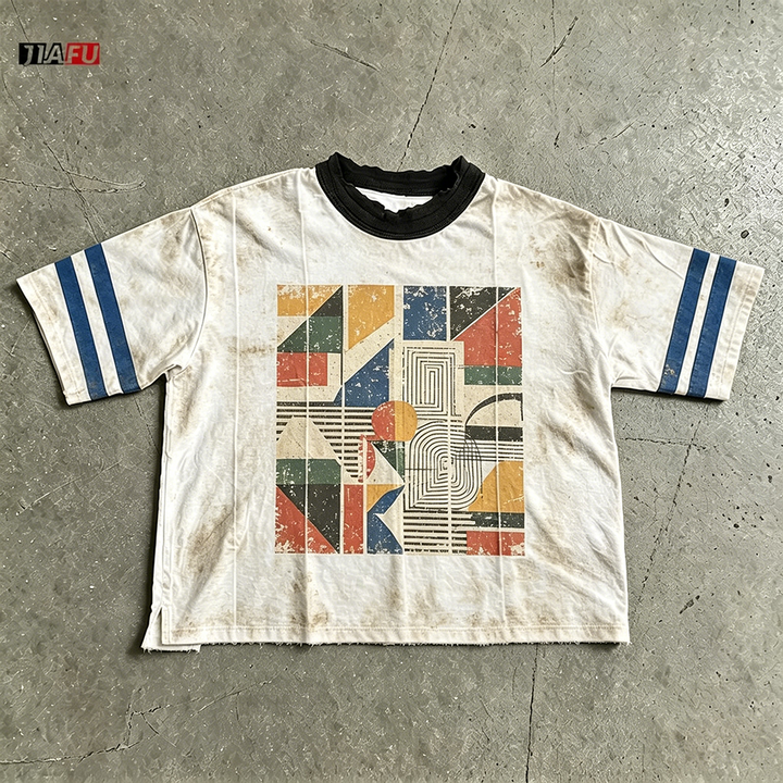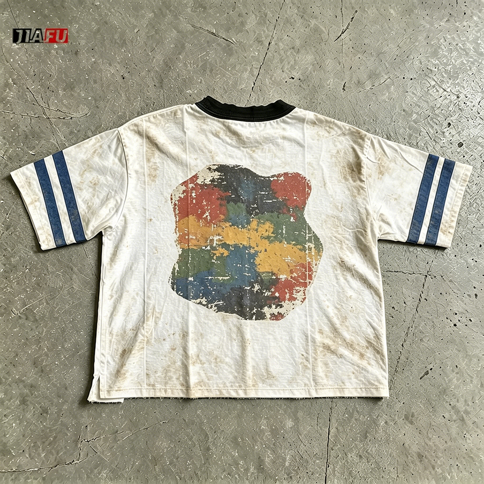 T-shirt Oversize da Uomo 260gsm Effetto Distressed Vintage Streetwear Patchwork Lavaggio Acido Personalizzabile con Grafiche Boxy Y2K