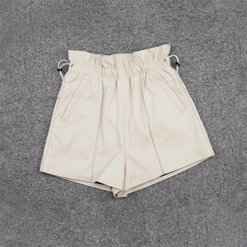 2613 alta qualità in pelle sartoriale elasticizzata in vita a pieghe pantaloni corti da donna impreziositi