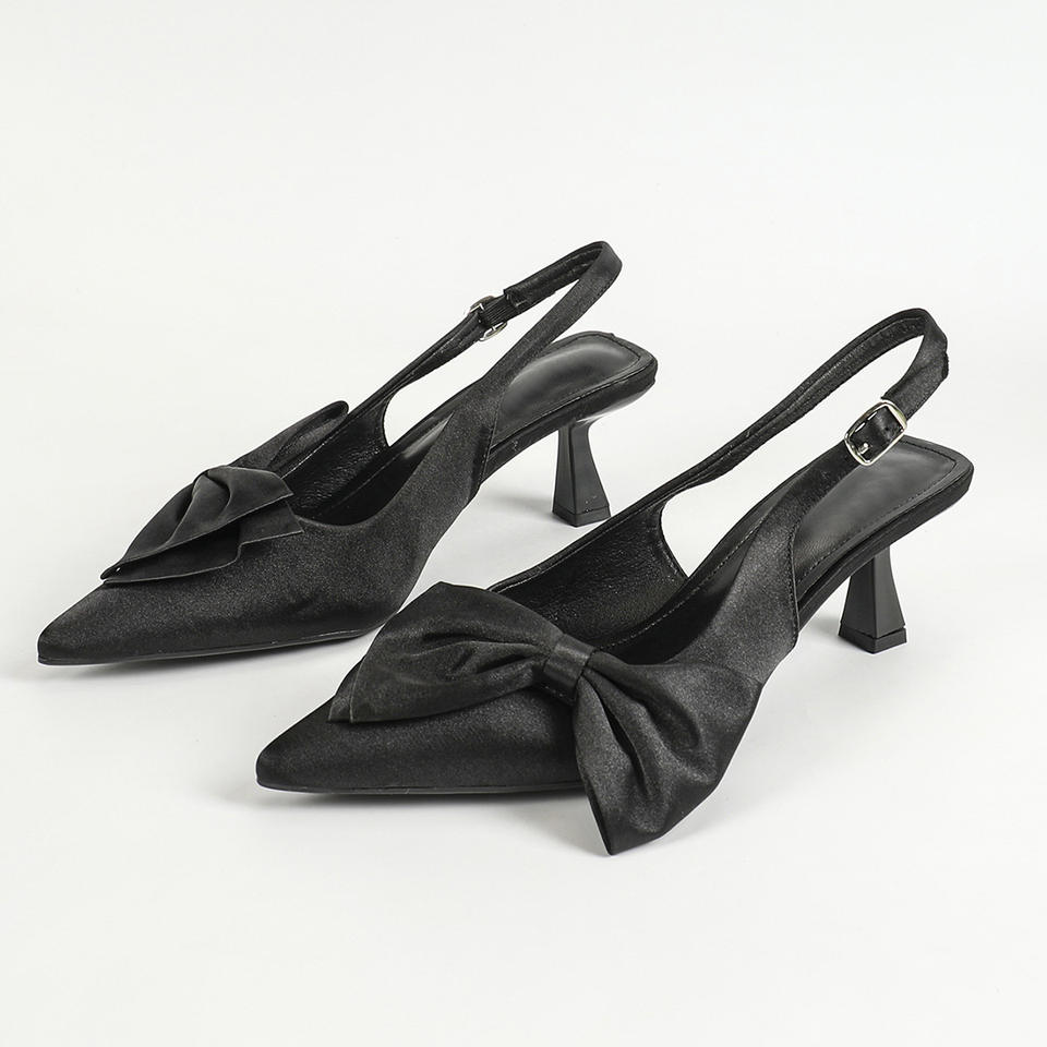 265-8 scarpe da donna in stile francese sandali con tacco basso in raso nero a punta