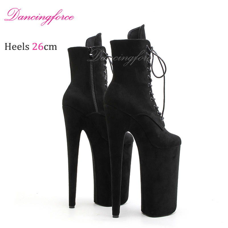26cm 10 Inch High Heels Closed Toe Knight Model Stripper Shoes Women Faux Suede Sexy Pole Dance Ankle Boots