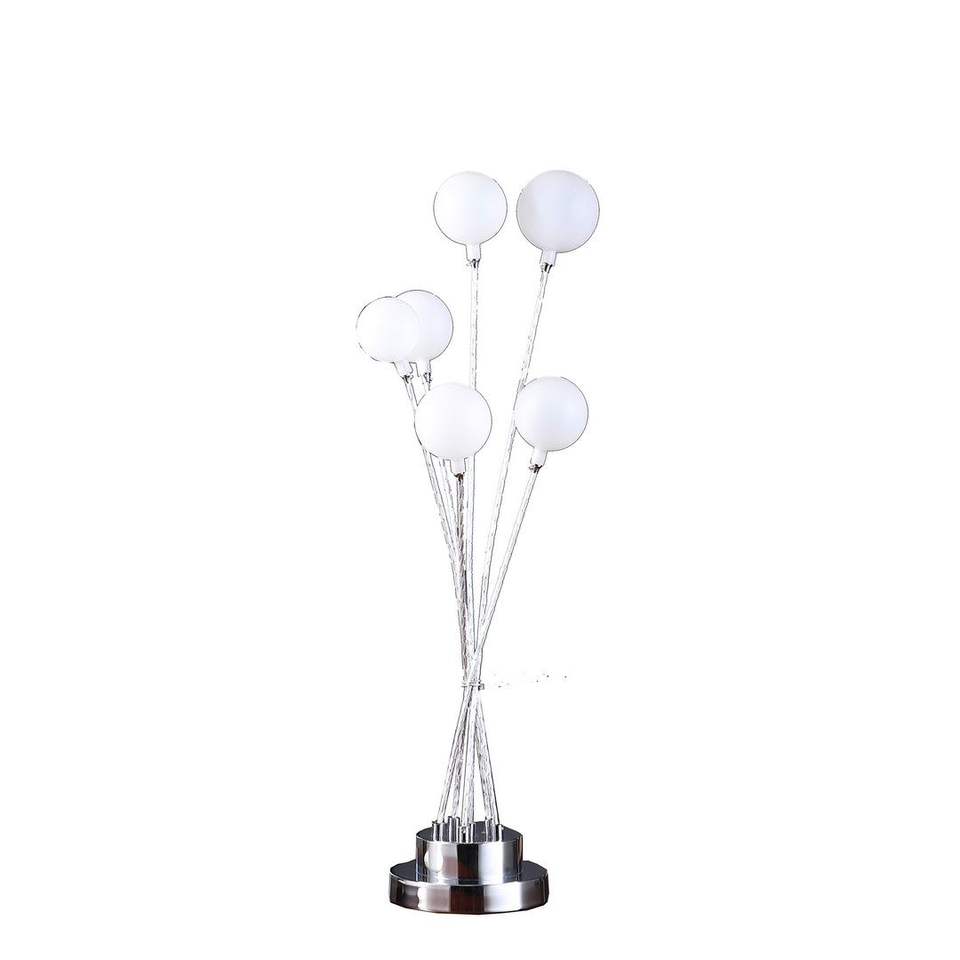 Lampada da tavolo a LED in alluminio da 27,5 pollici con 6 luci, globo in acrilico e finitura in metallo cromato, design Chrysanthe Silver