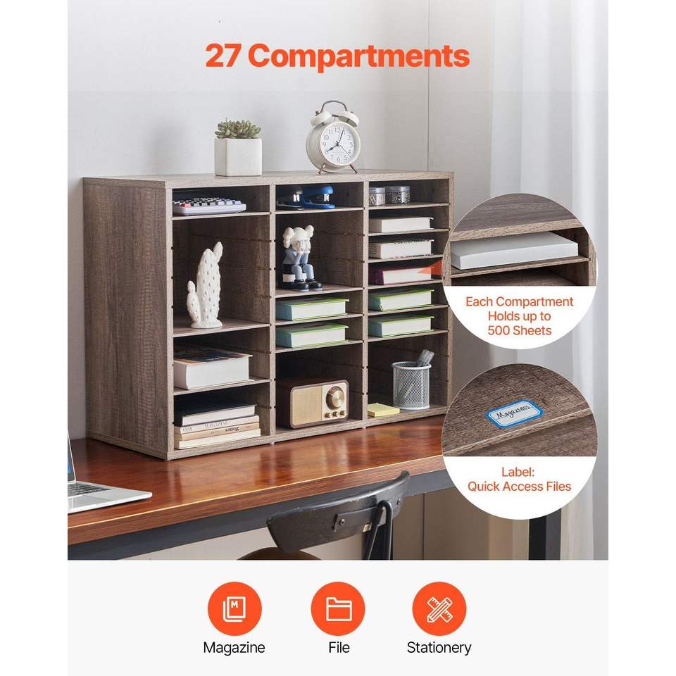 Organizzatore per Documenti in Truciolato a 27 Scomparti con Ripiani Rimovibili, Classificatore Postale per Casa o Ufficio