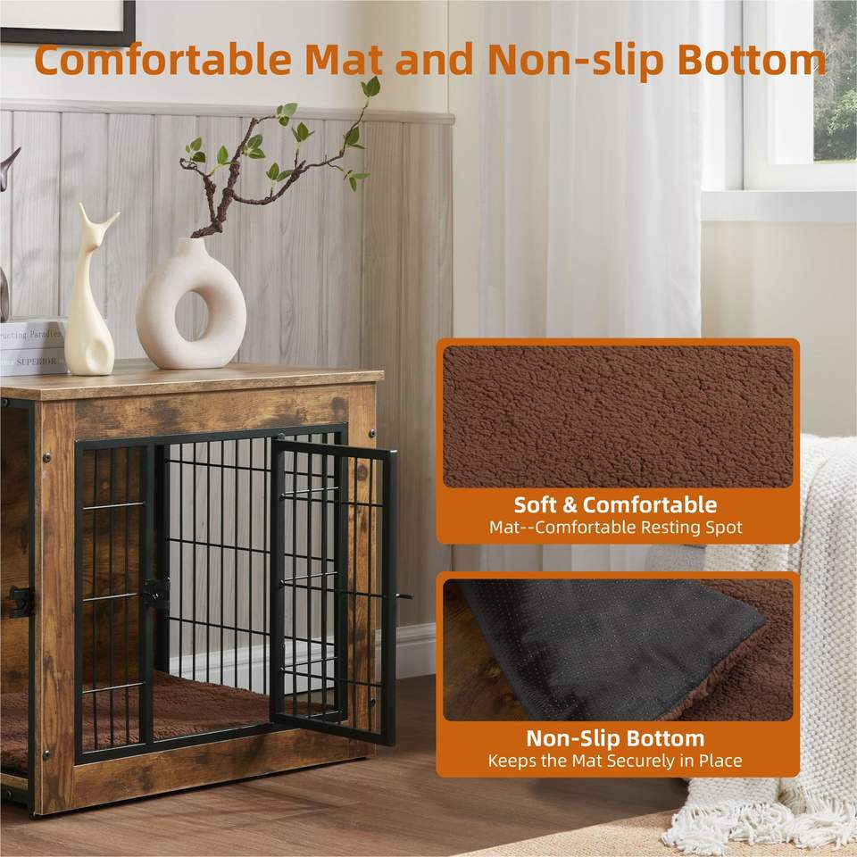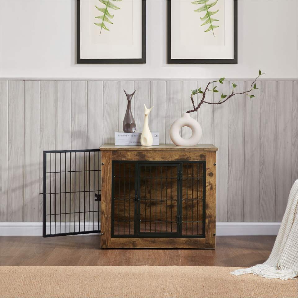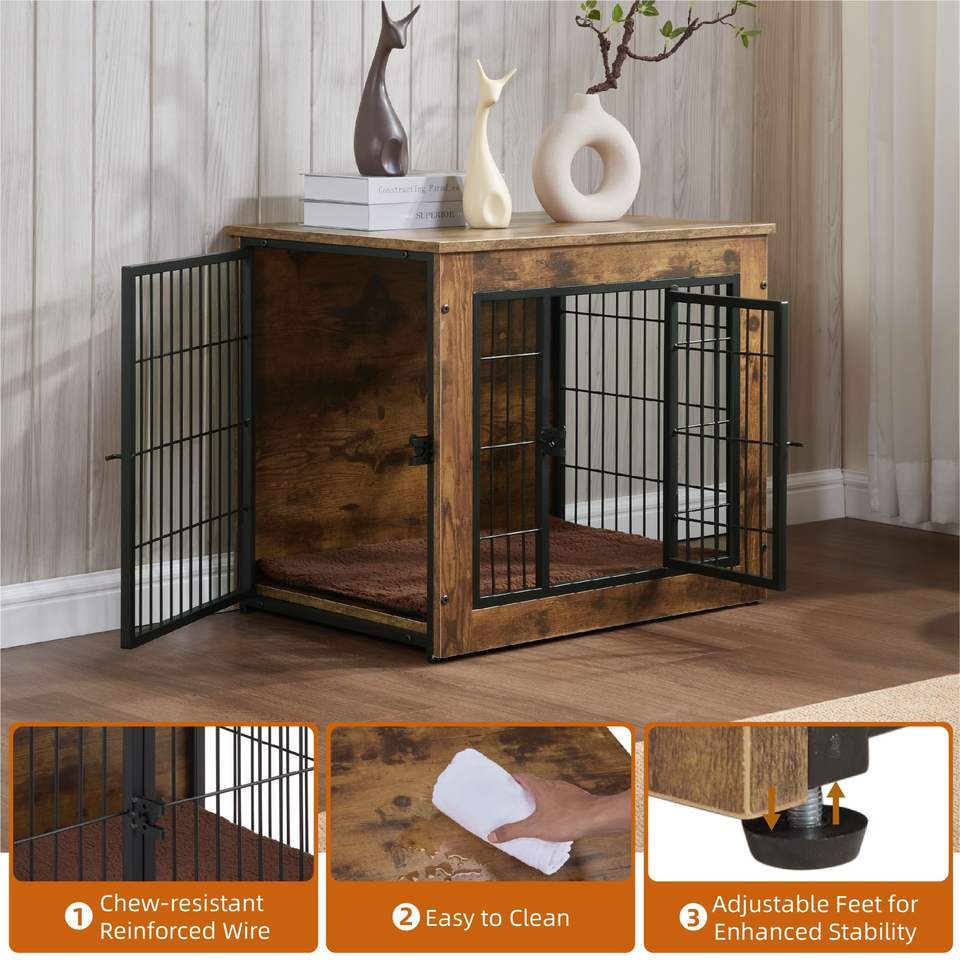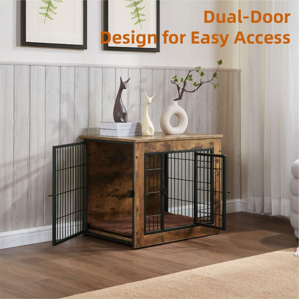 Cuccia per Cani Robusta con Doppia Porta da 27 Pollici, in Legno, con Cuscino, per Cuccioli e Cani Adulti
