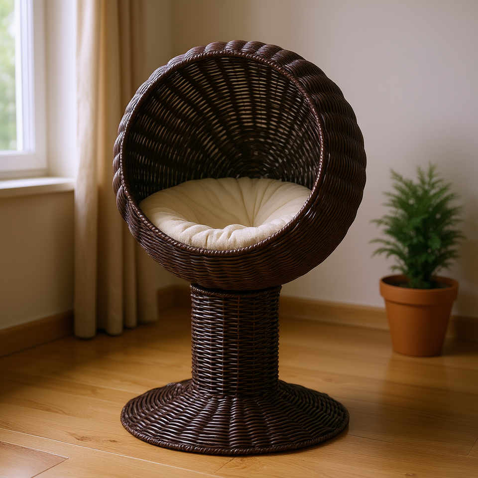 Elevated Cat Bed Rotatable Egg Chair Pod 27 Inch Grass Woven Coffee Color Premium Pet Bed Indoor All Seasons